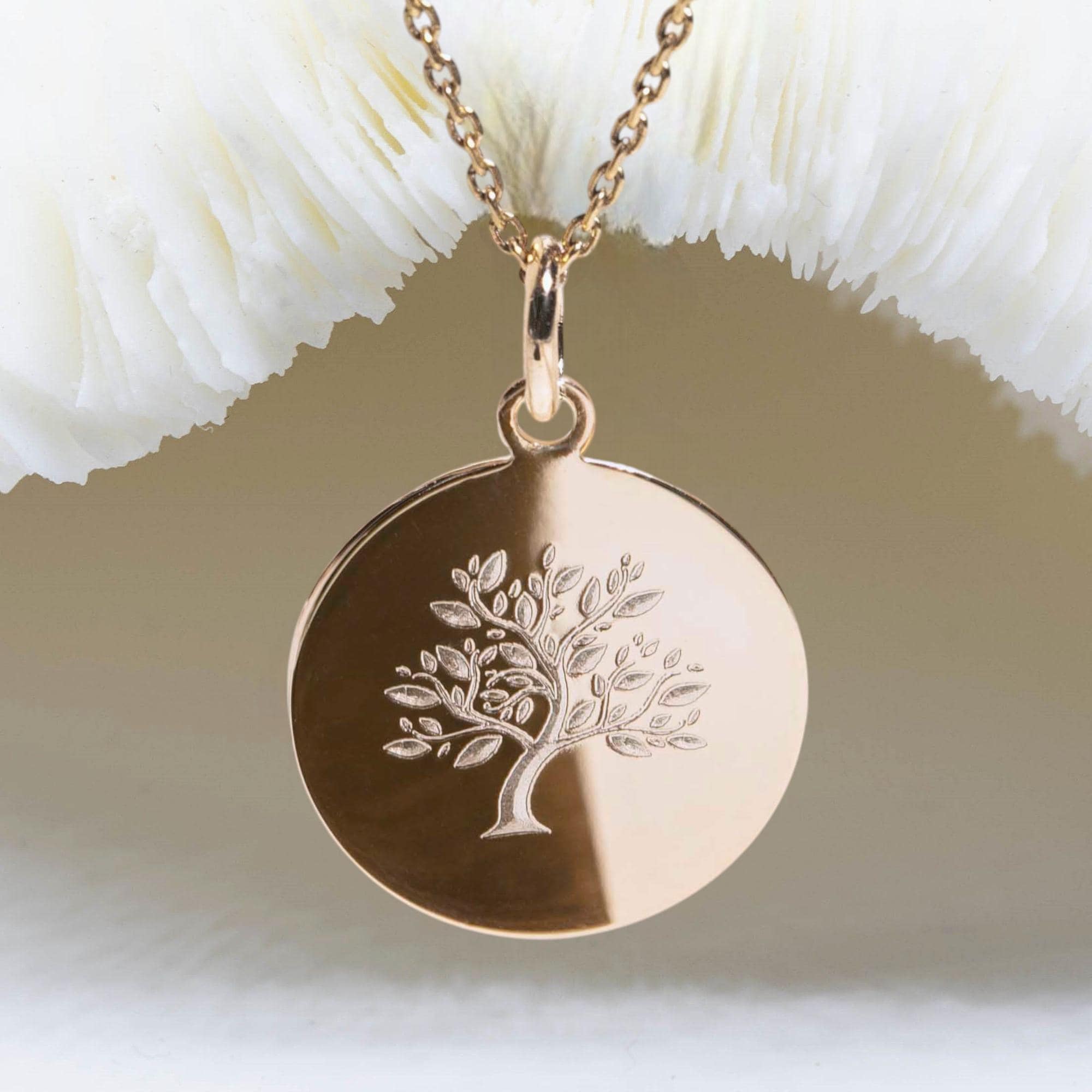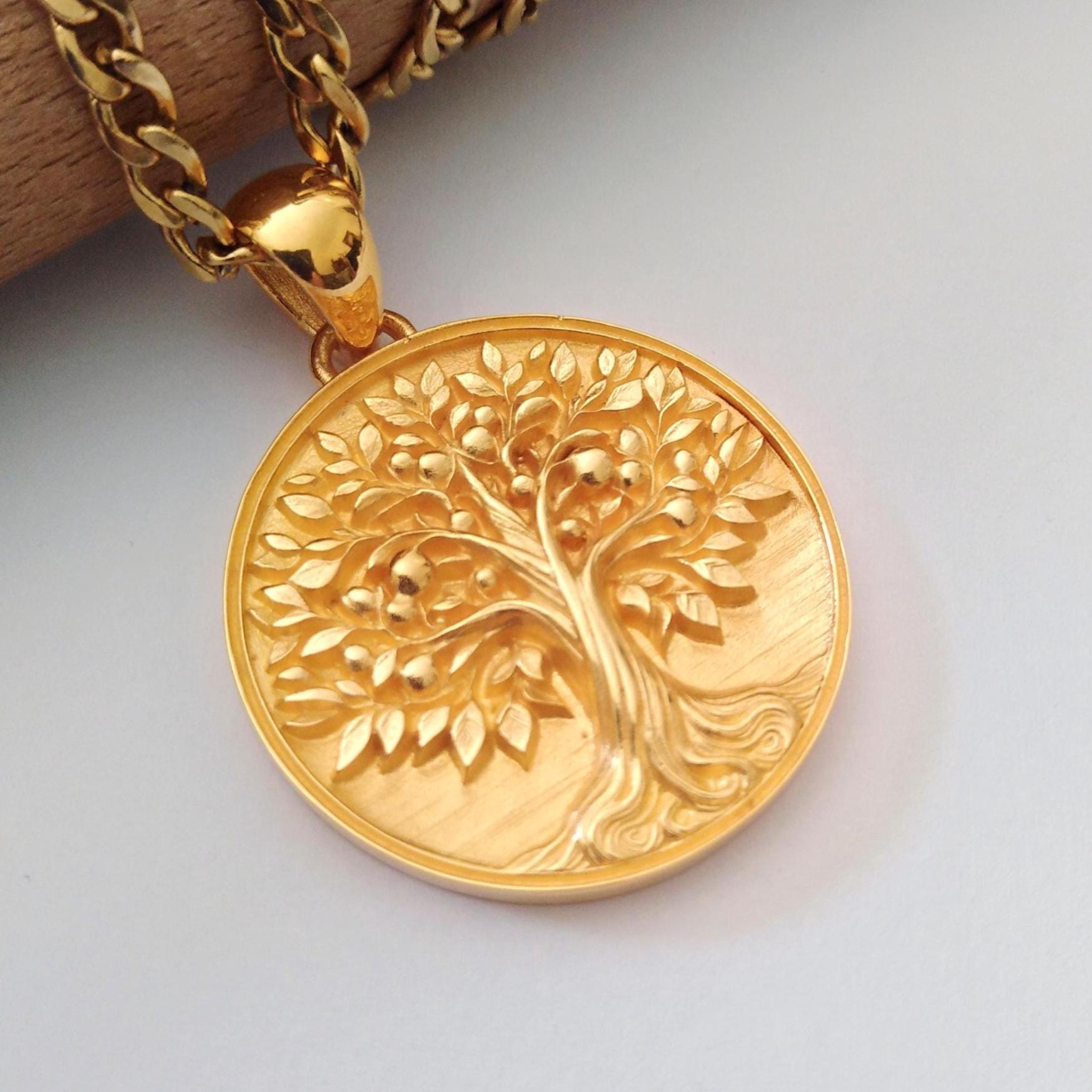"TREE of LIFE pendant 17 mm (0.67') on engraved medal in 3 micron gold plate or high quality Fr...