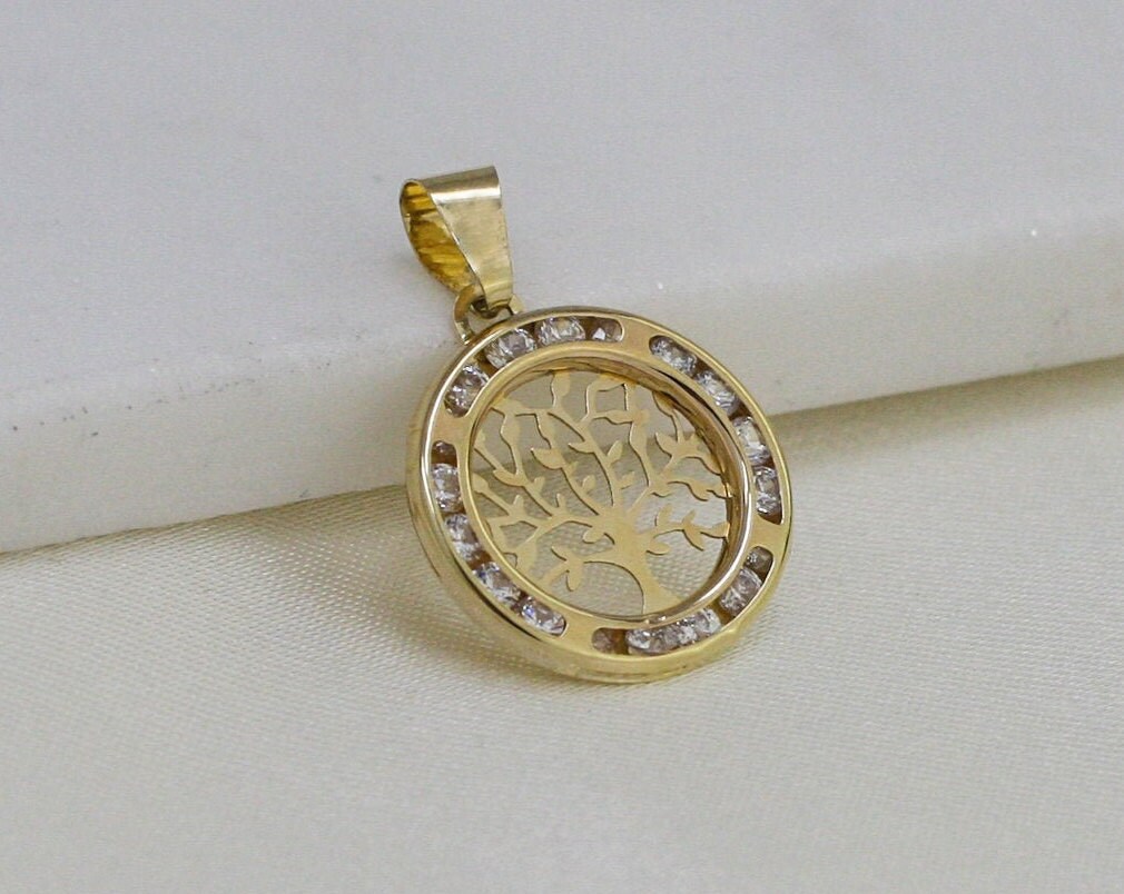 14k Solid Gold Tree of Life Pendant 15mm, Gold Life Pendant, Gold C...