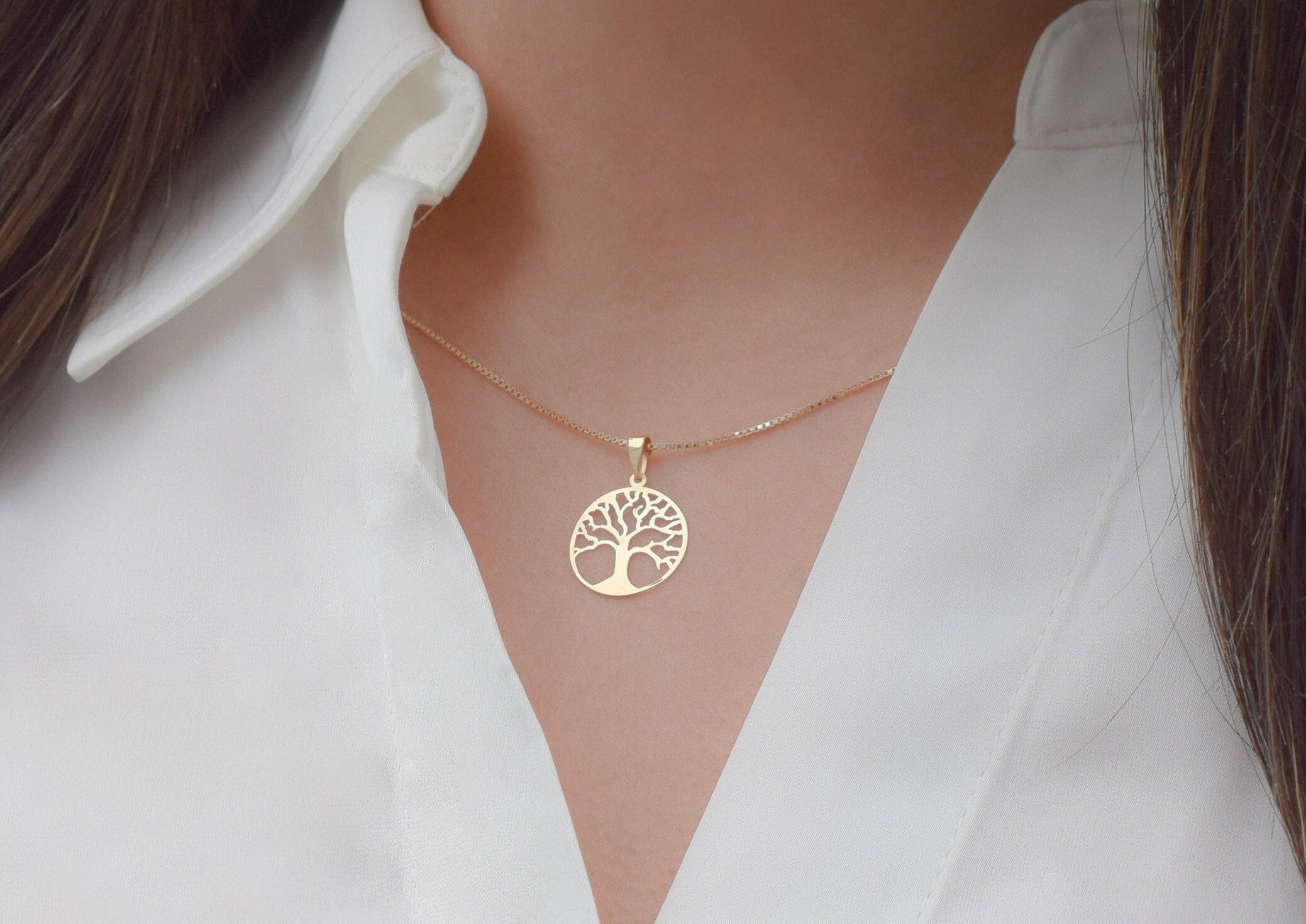 14K Gold Tree Of Life Necklace, Tree Of Life Pendant, Tree Of Life ...