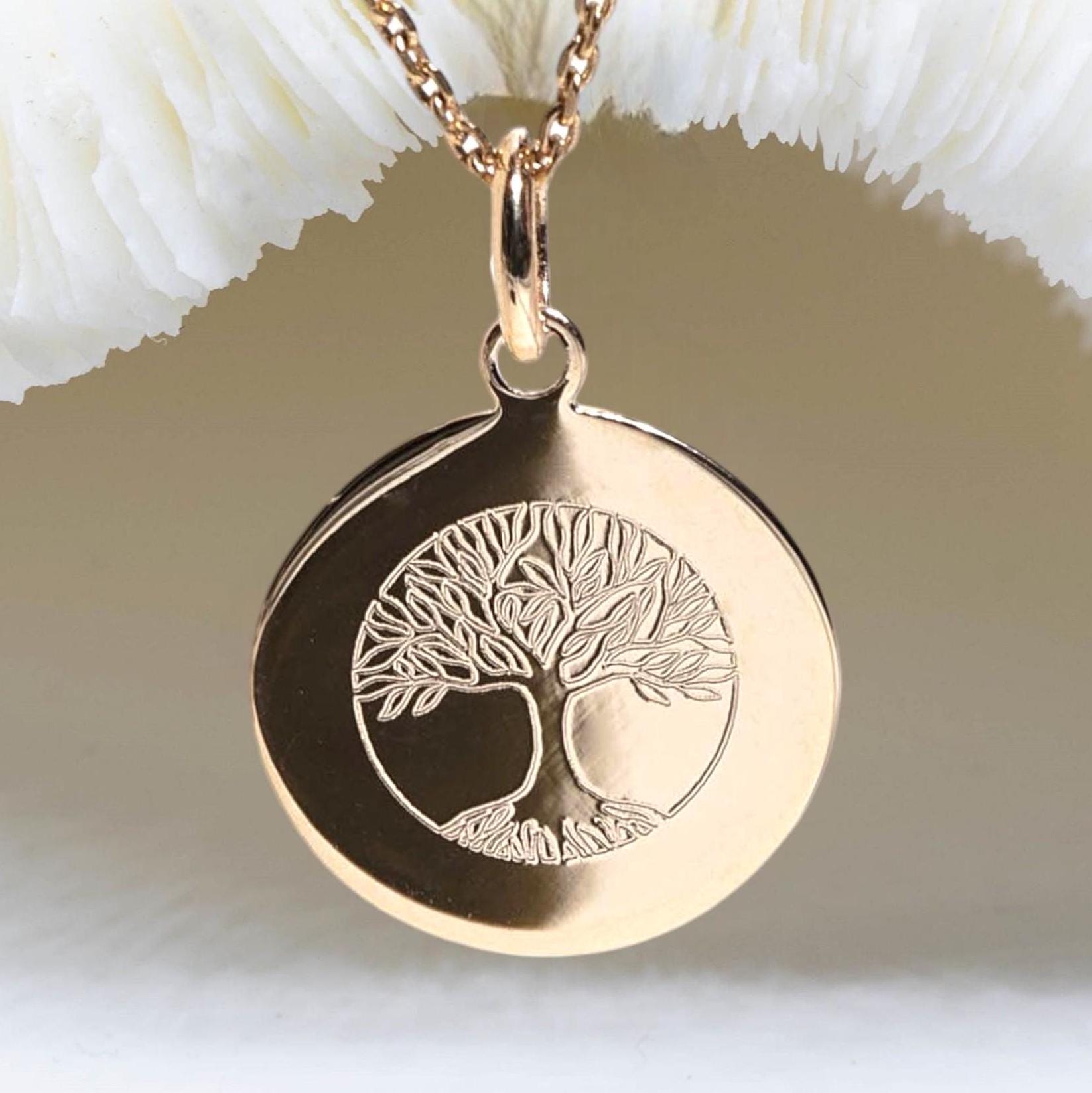 Real 14K Solid Gold Tree of Life Disc Pendant, Gold Tree of Life Ne...