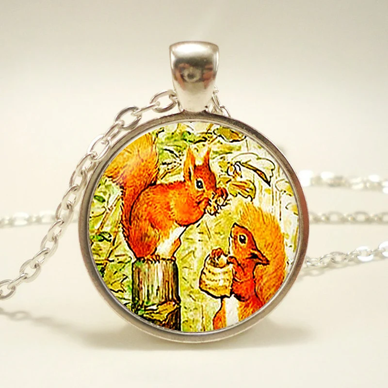 Tale of Squirrel Nutkin art Pendant. Beatrix Potter Necklace. Tale jewelry. Birthday gift, glass Cab...