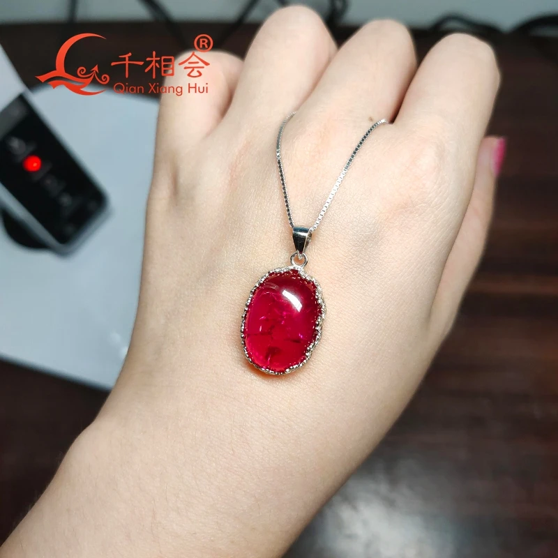 Fashion 23ct oval shape cabochon lab grown Red Ruby corundum Main Stone S925 Silver Jewelry necklace...