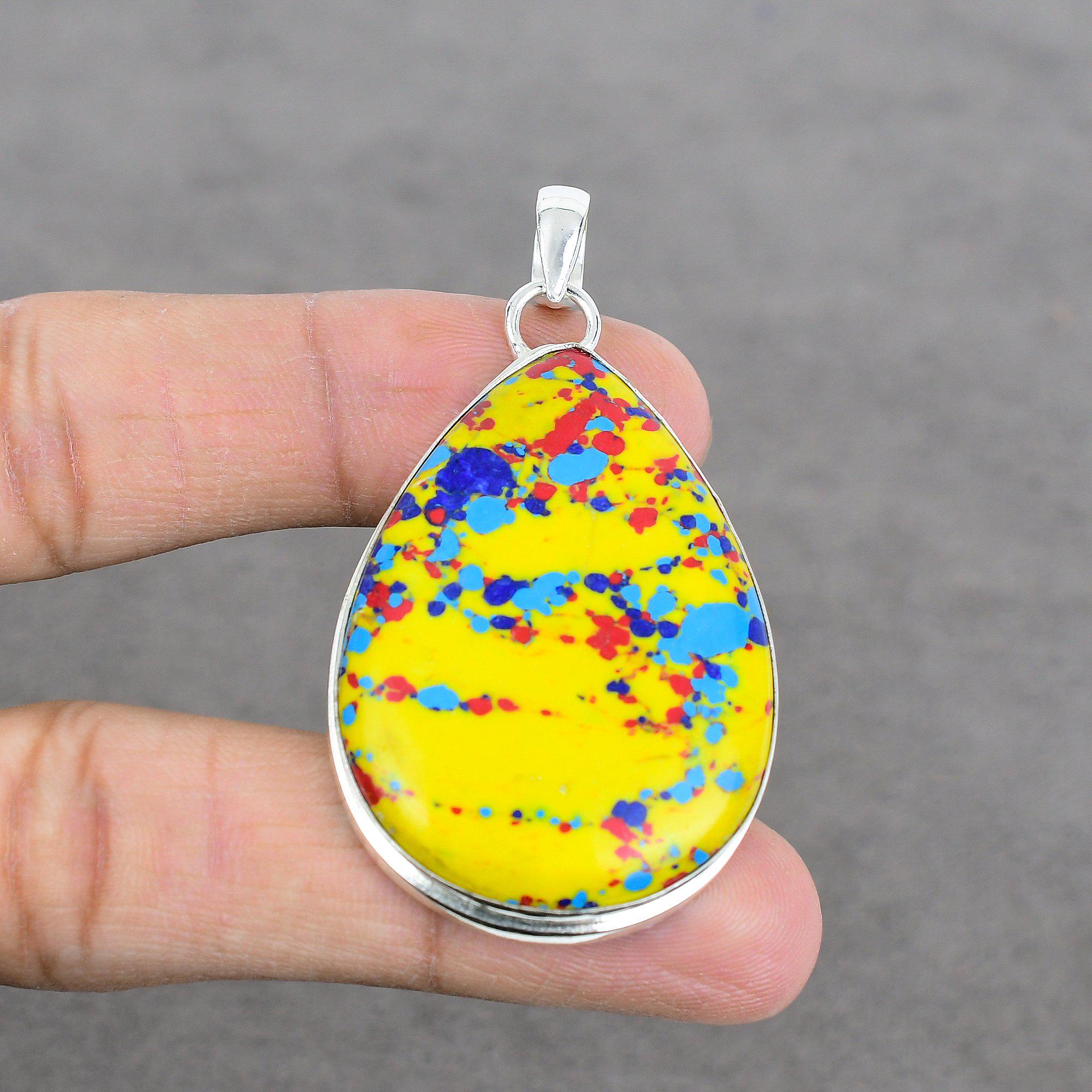 Yellow Turquoise Gemstone Pendant Turquoise Silver Pendant Yellow T...