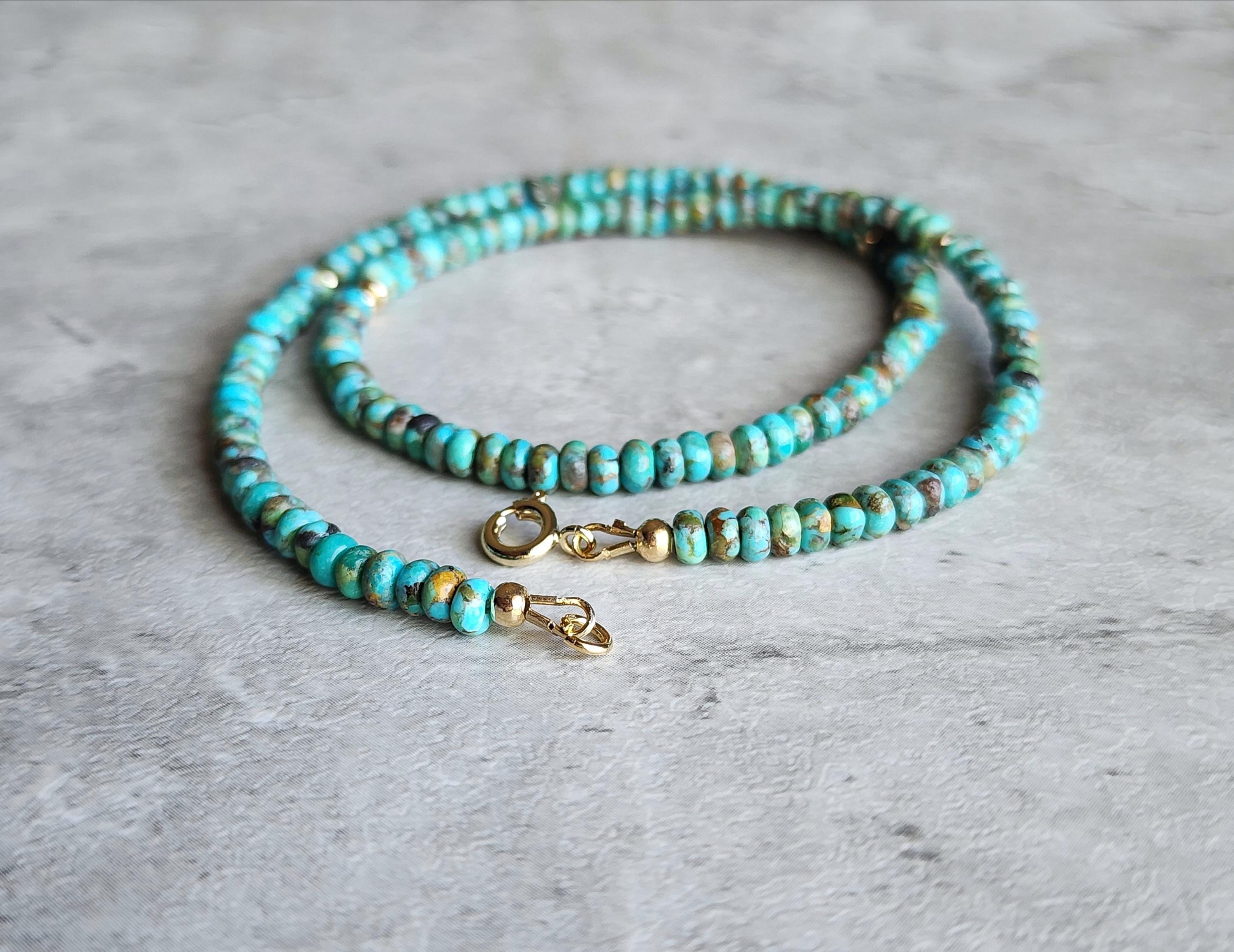 Natural Turquoise Necklace Turquoise Bead Necklace Turquoise Gold a...