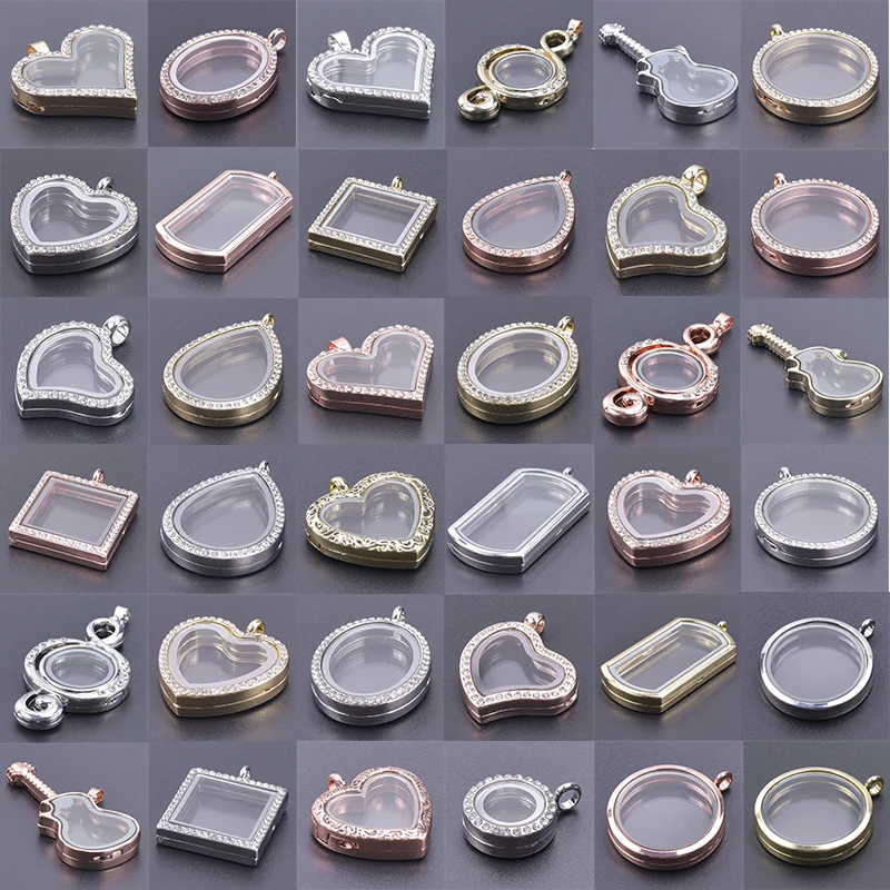 1Pc Mix Styles Round Heart Reliquary Picture Locket Pendant Punk Geometric Glass Urn Ashes Memorial ...