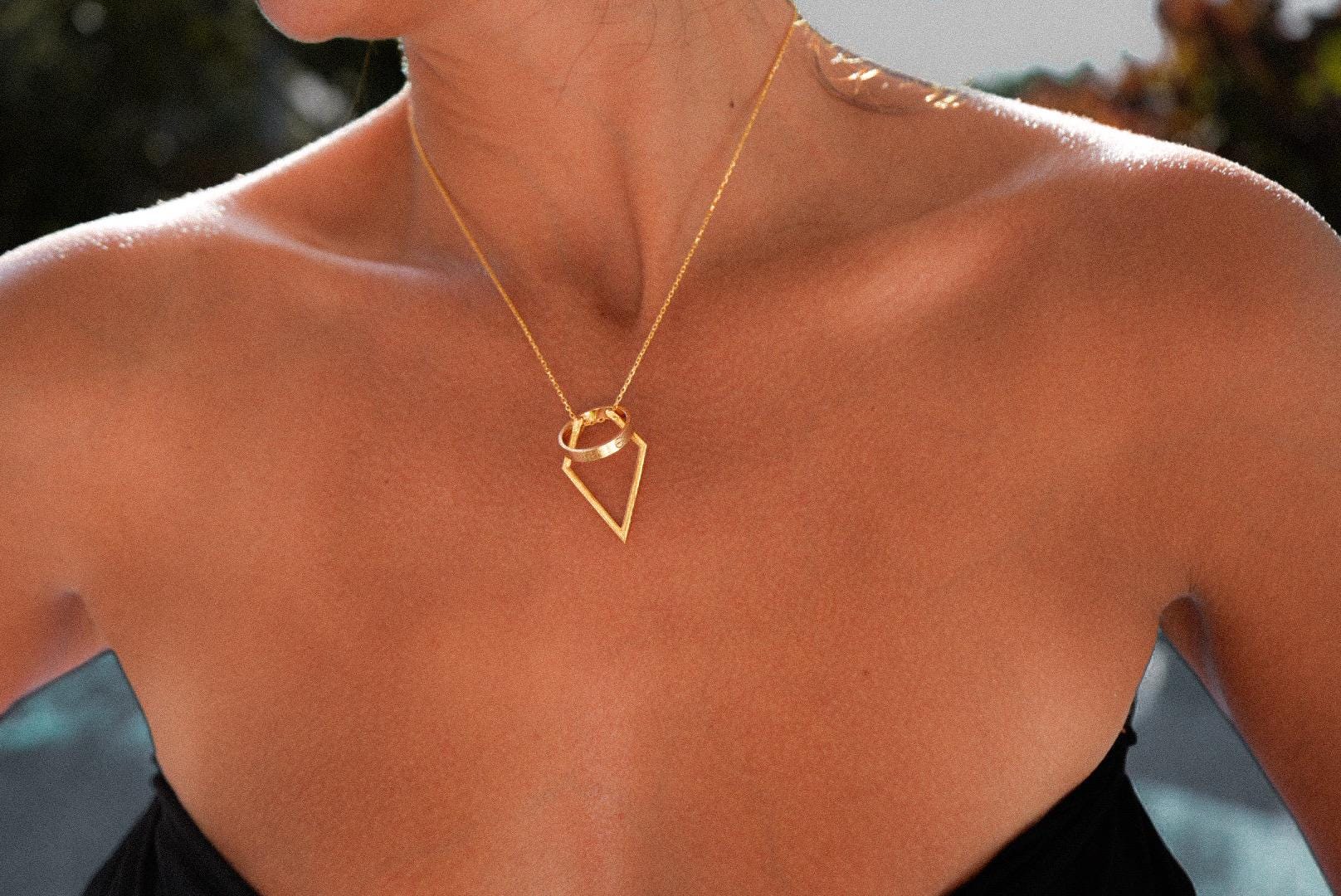 14k gold minimalist geomatric ring holder pendant necklase,with all...