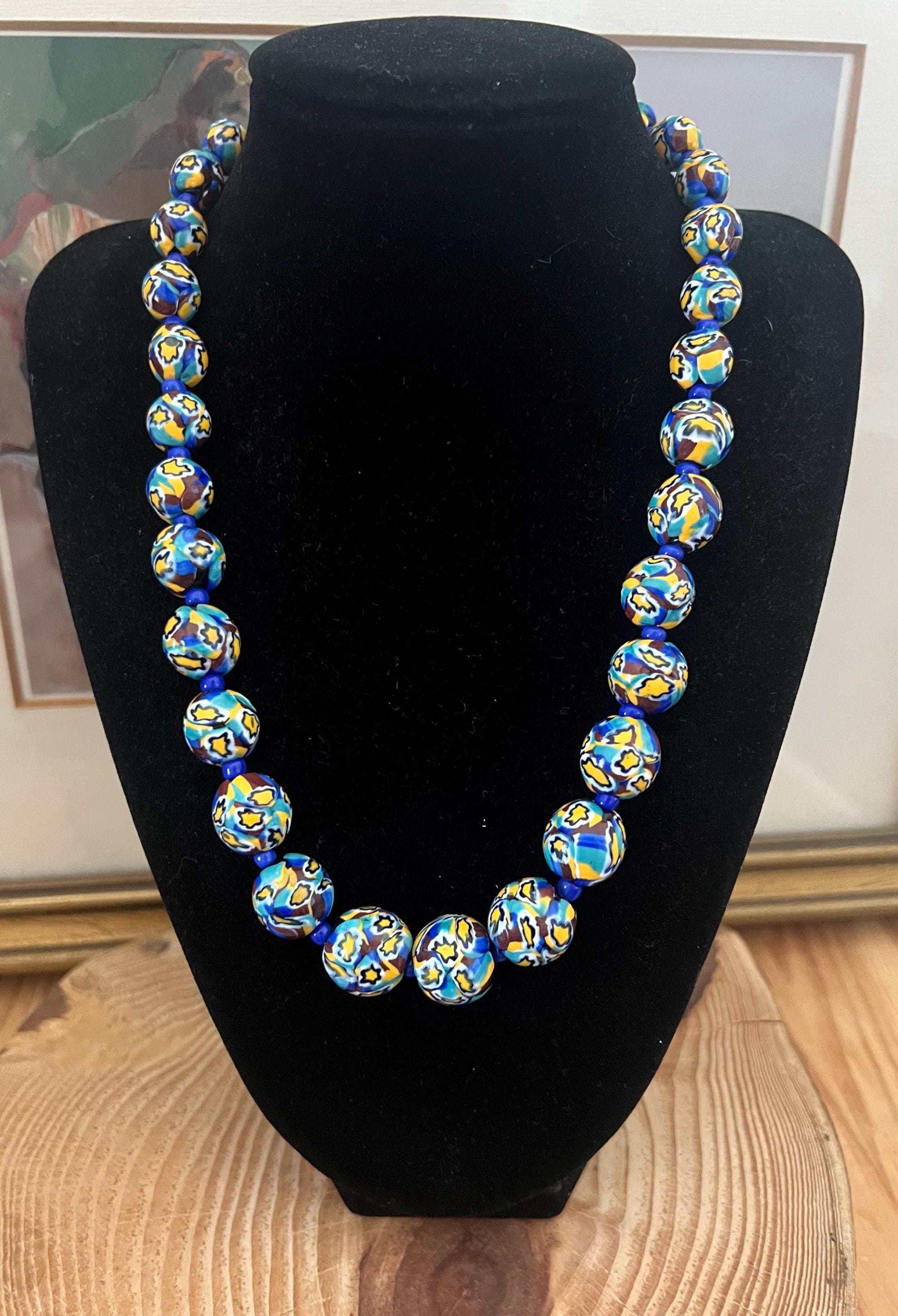 Murano Millefiori sapphire blue glass necklace, Venetian Murano gla...