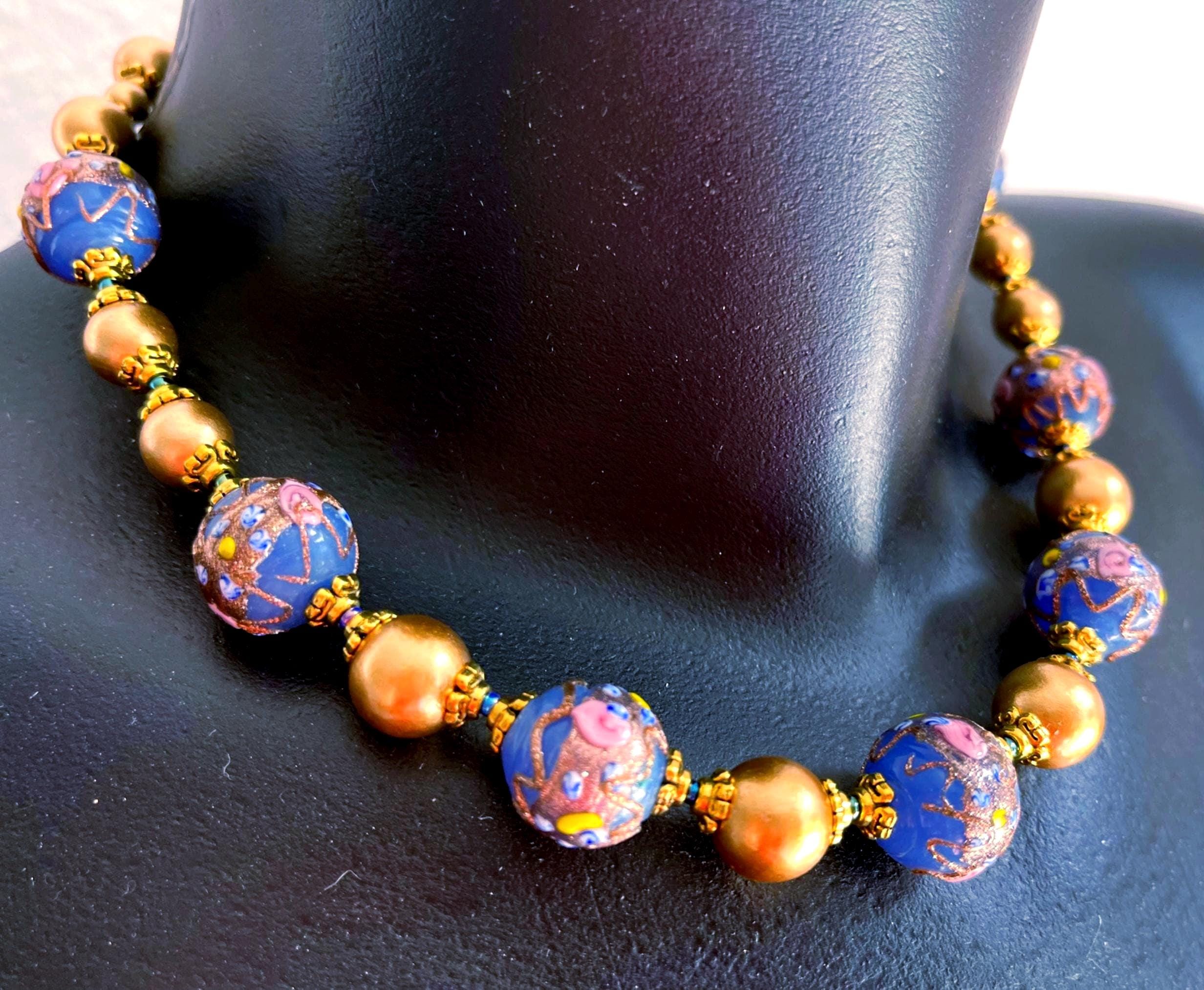Vintage Murano necklace, handmade beaded necklace with Venetian gla...