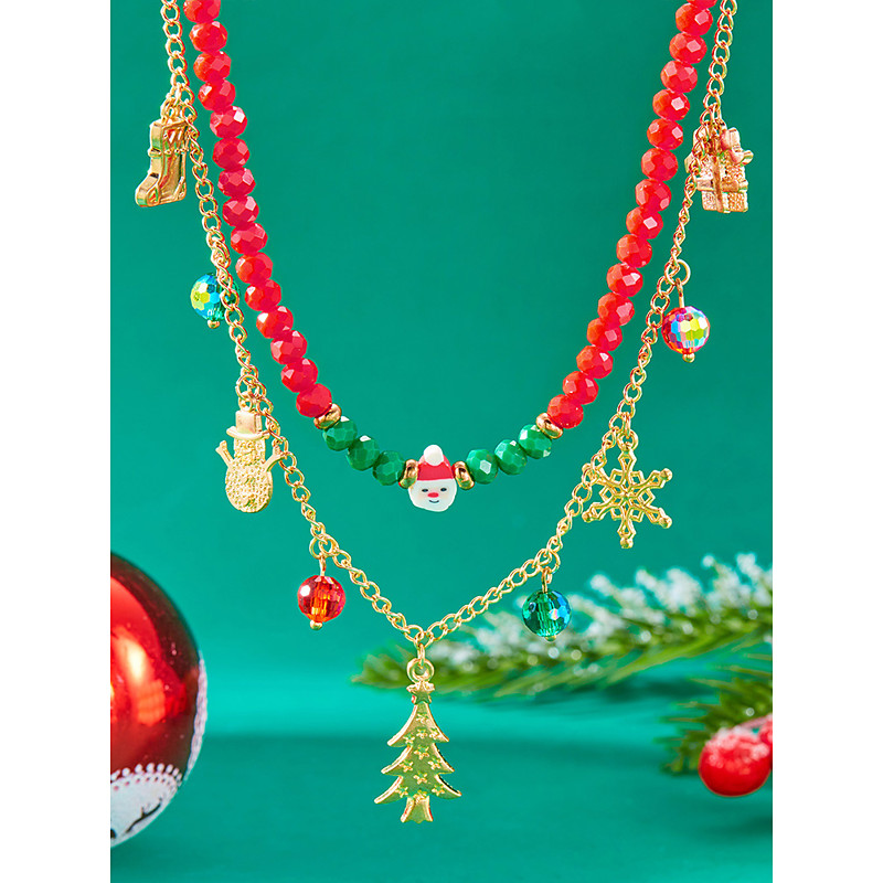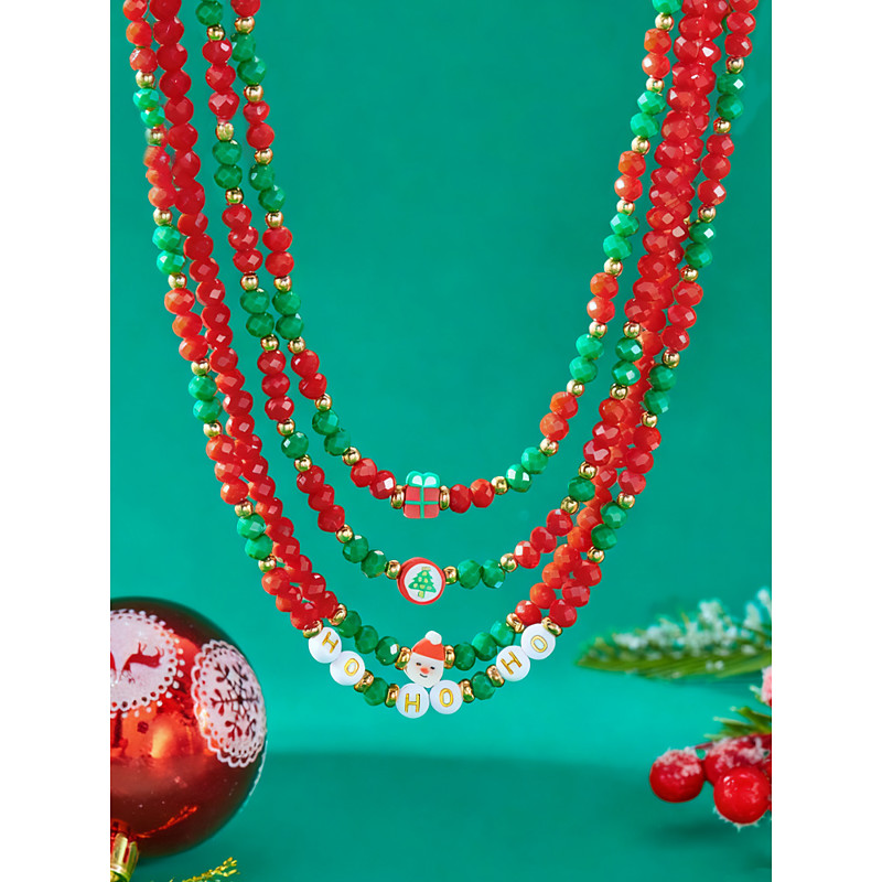 Women's Christmas Beaded Necklace Set – Red Green Beads with ...