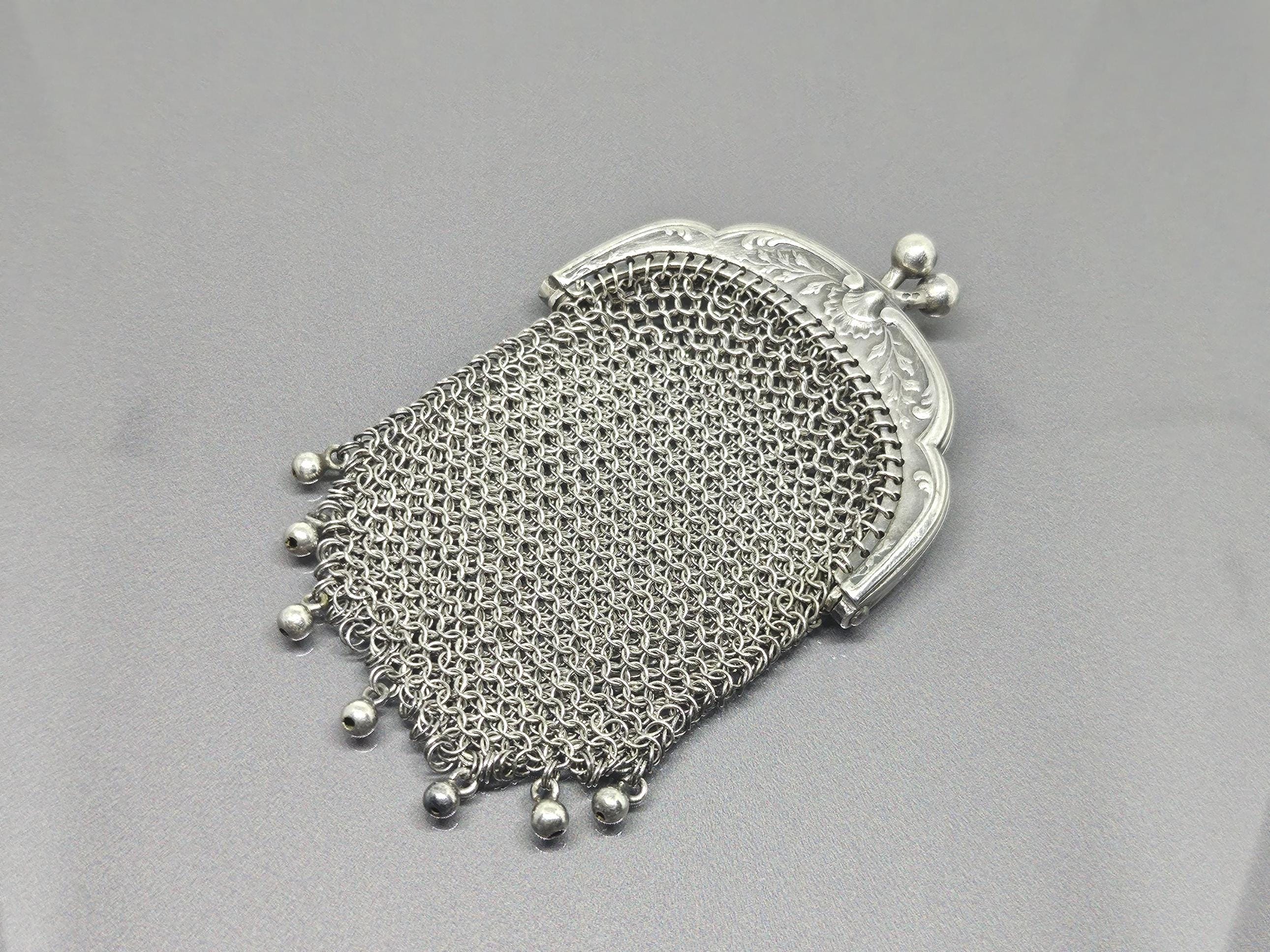 800 Silver - Antique French Chatelaine Purse Pendant French Mesh Link Coin Purse Pendant Antique Fre...