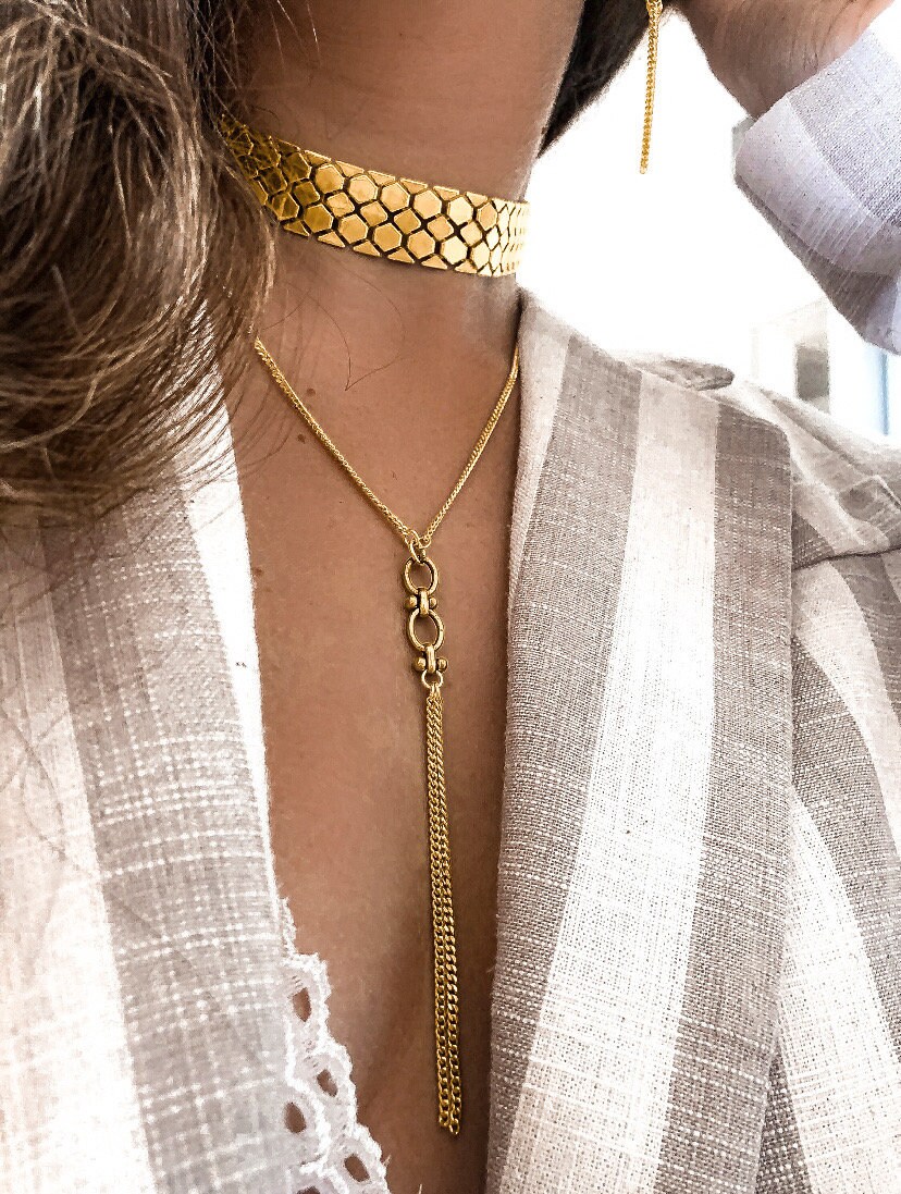Lariat chain gold necklace, Gold boho necklace Y necklace silver go...