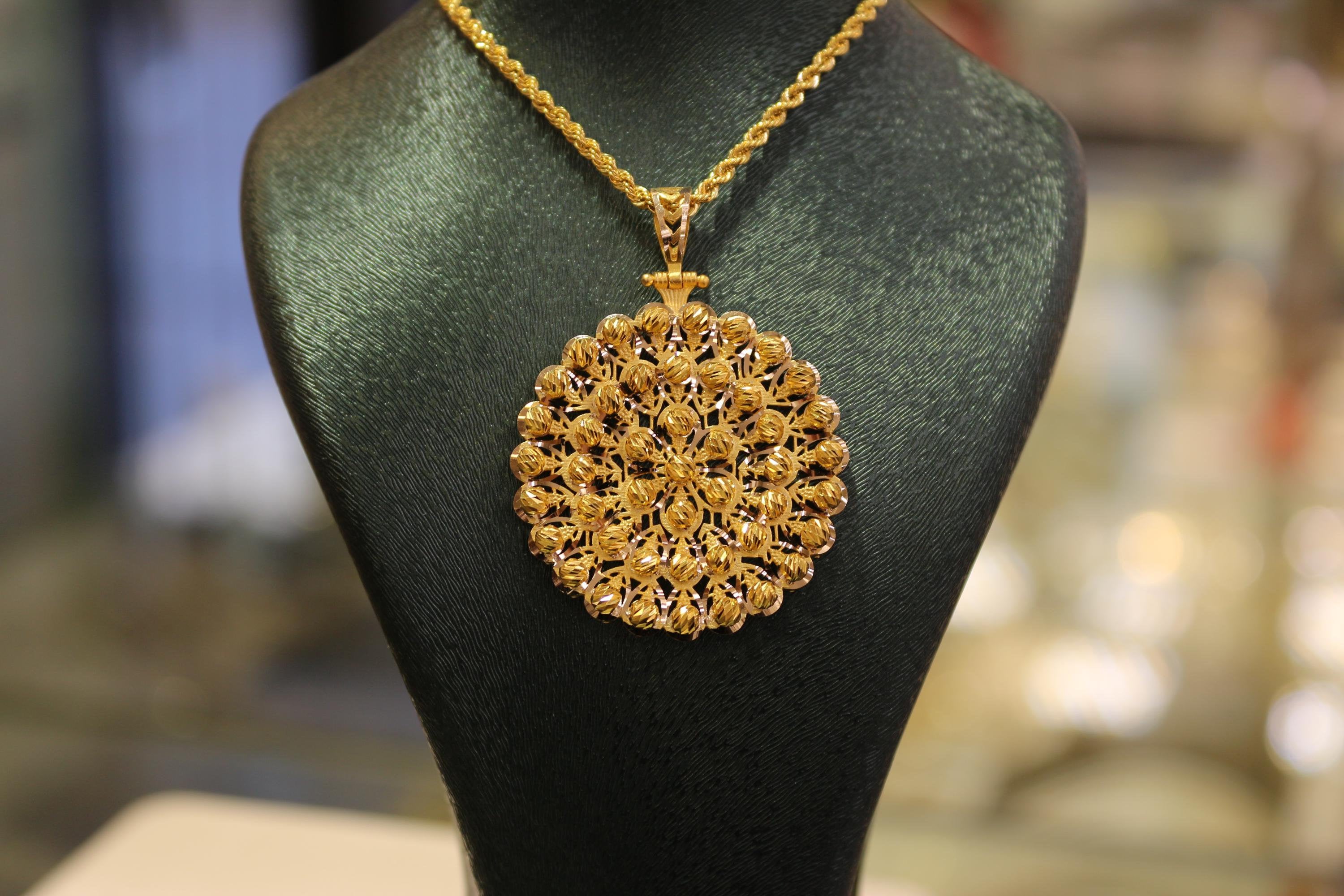 14K Gold Dorica Bead Ball Necklace, Dorica Gold Pendant, Jewelry fo...