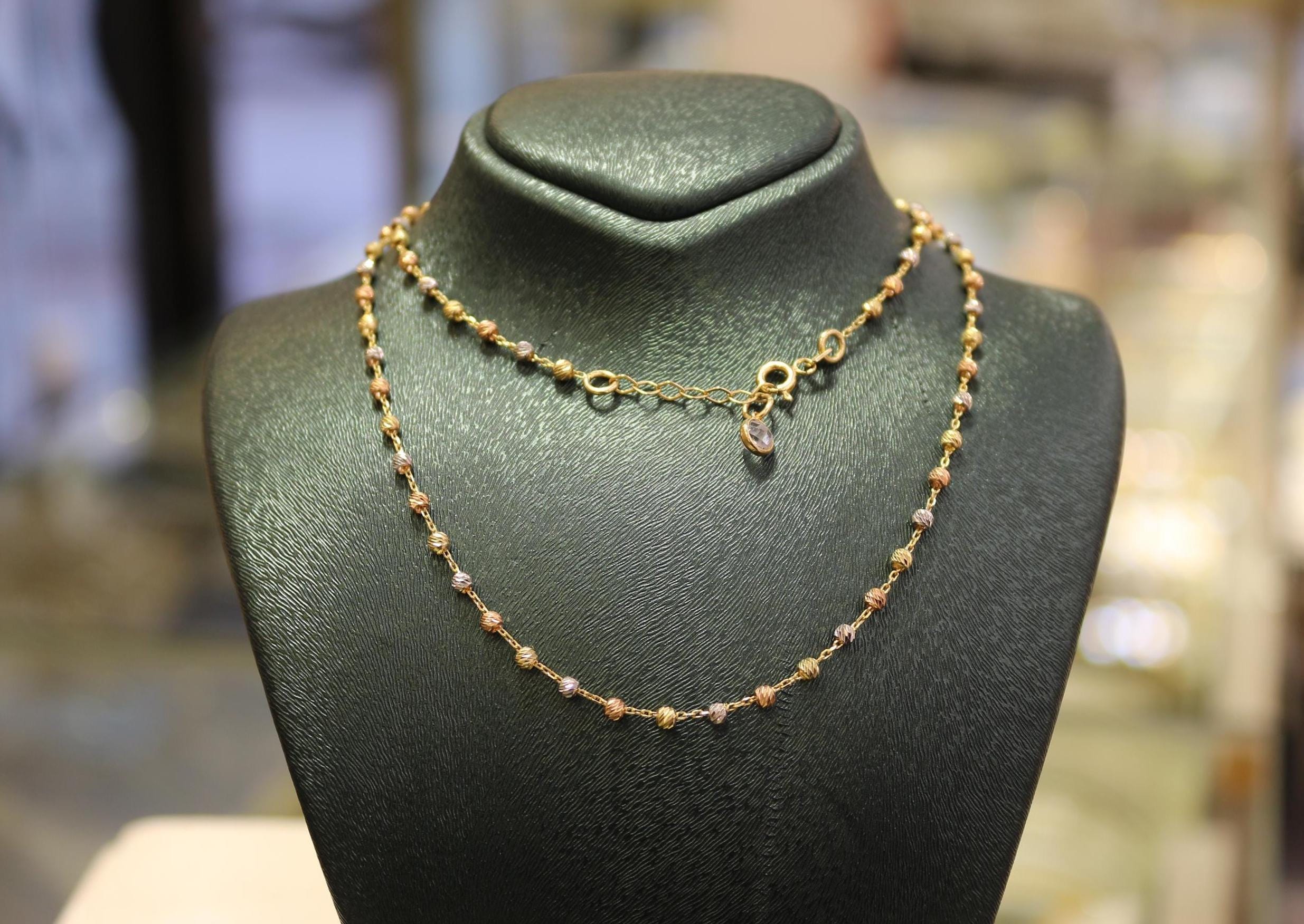 14K Gold Dorica Bead Ball Chain Necklace, Dorica Gold Chain, Jewelr...