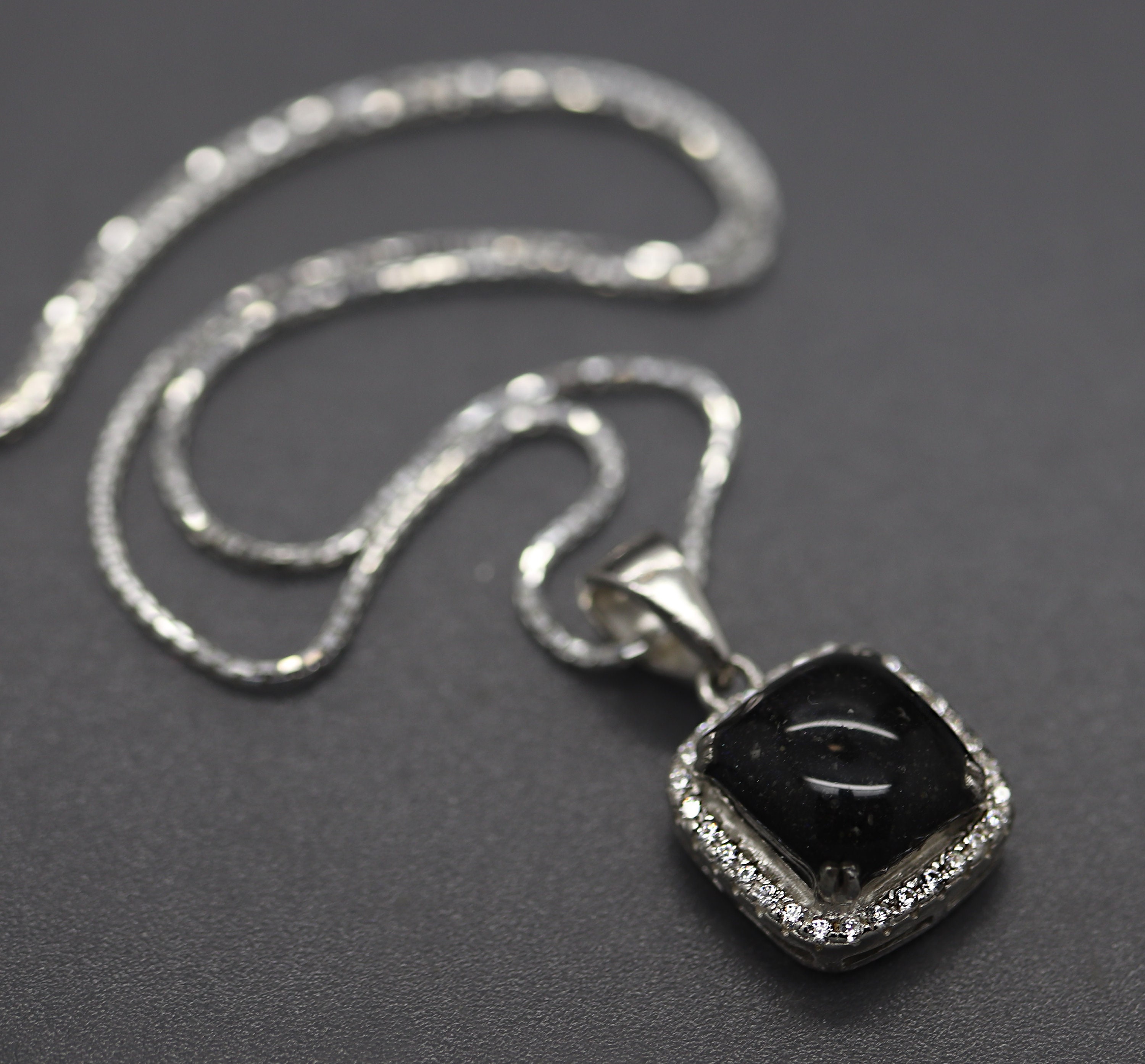 "This princess cut halo cremation ash pendant is solid sterling silver with a rhodium plating. ...