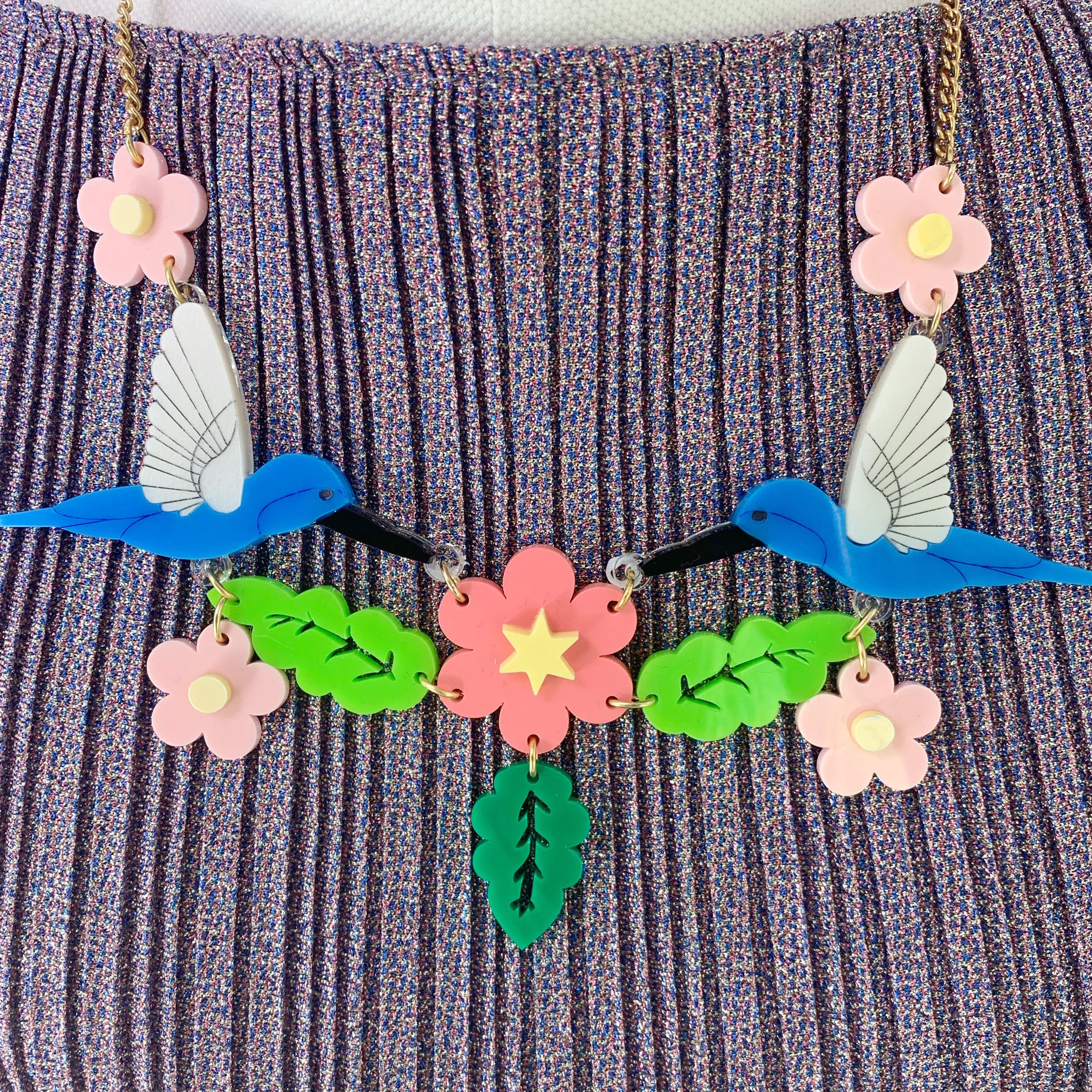 Hummingbird necklace, plastic jewellery, statement jewellery, acryl...