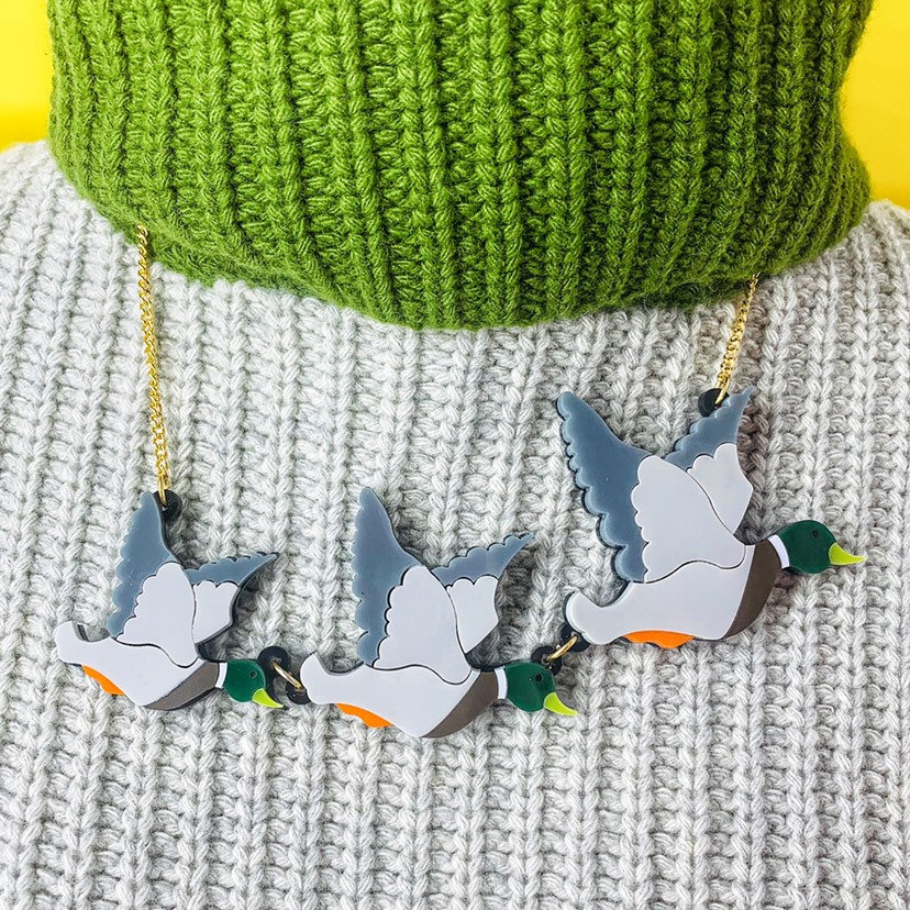 Flying duck necklace, perspex jewellery, plastic jewellery, acrylic...