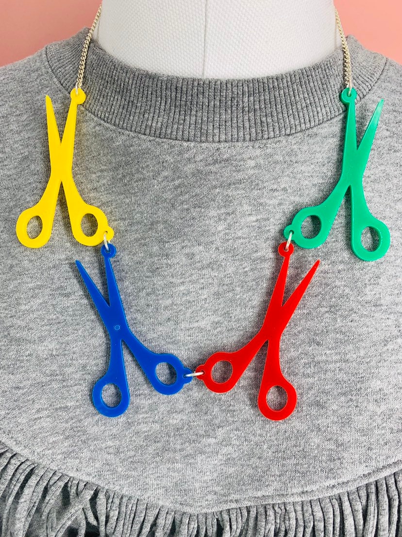 Scissors necklace, plastic jewellery, handmade jewellery, acrylic j...