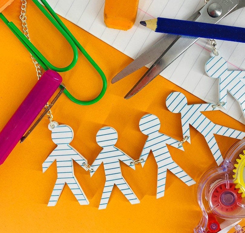 Paper man necklace is a fun, statement piece to pair with your outfit. The necklace is made from whi...