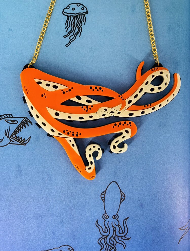 Octopus necklace, perspex jewellery, perspex jewelry, acrylic jewel...