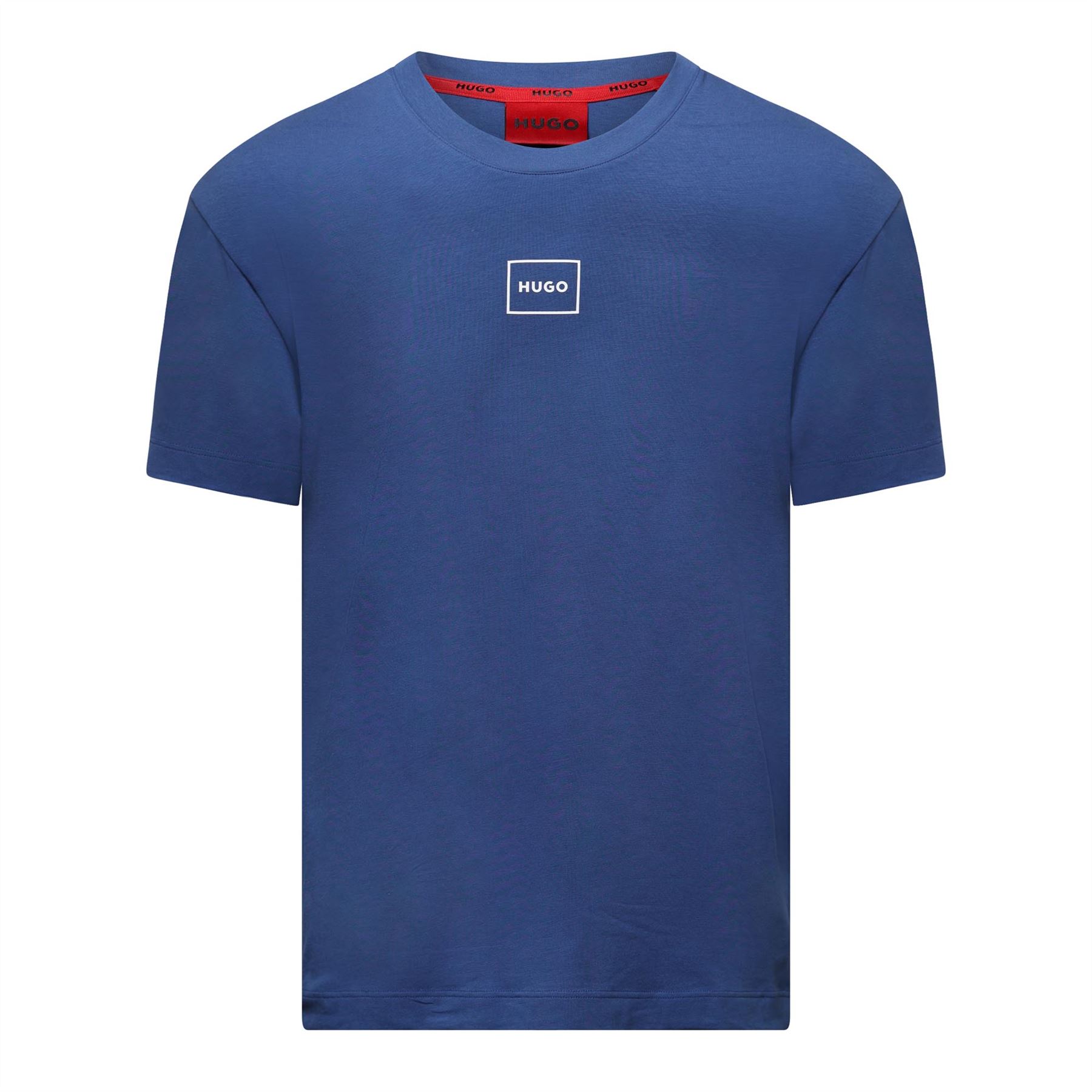 Mens HUGO Laze Logo Print Loungewear T-Shirt in Stretch Cotton in medium blue.Cut to a relaxed fit i...