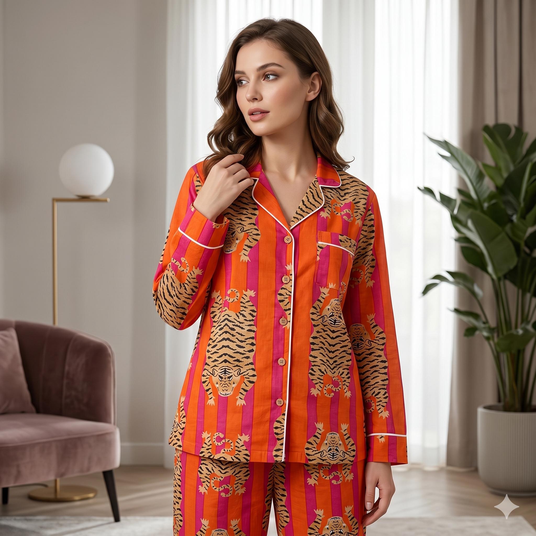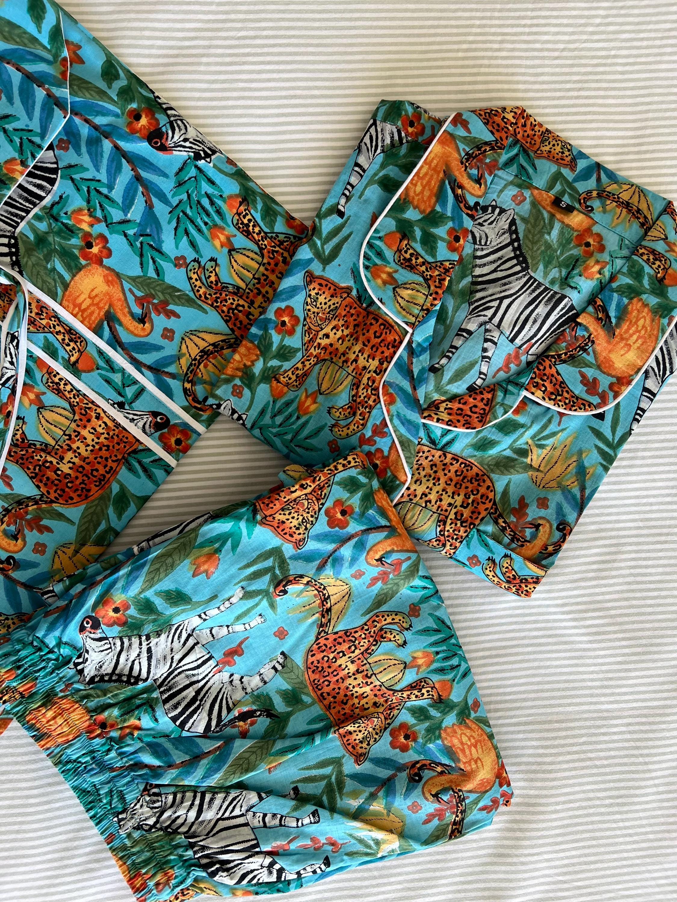 "Stitching Studio India Tiger Print pure cotton pyjamas, Womens cotton pj's, Soft cotton pajama...