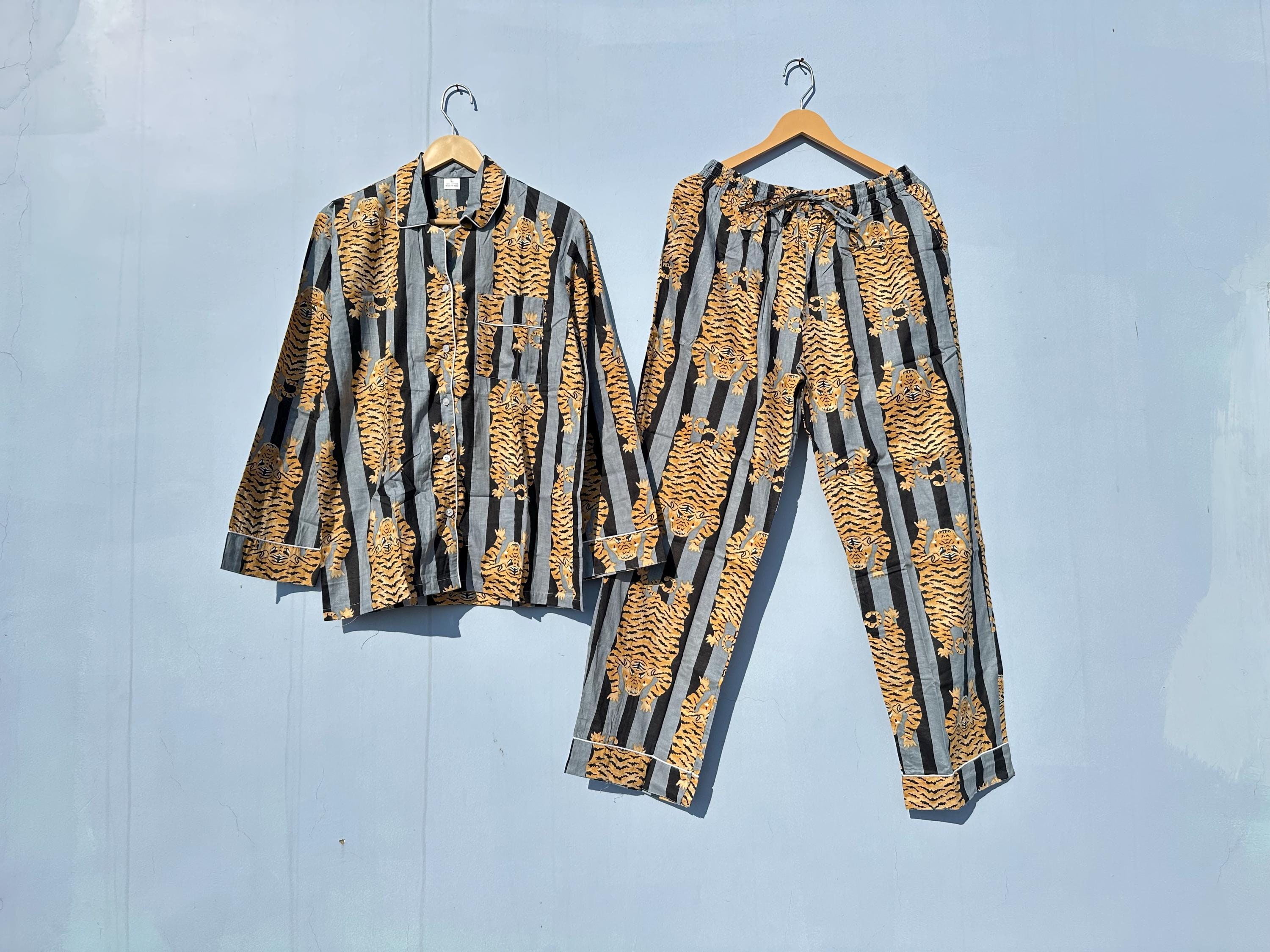 Tiger Print Cotton Pajama Set, Indian Cotton Set, Summer Cotton Set...