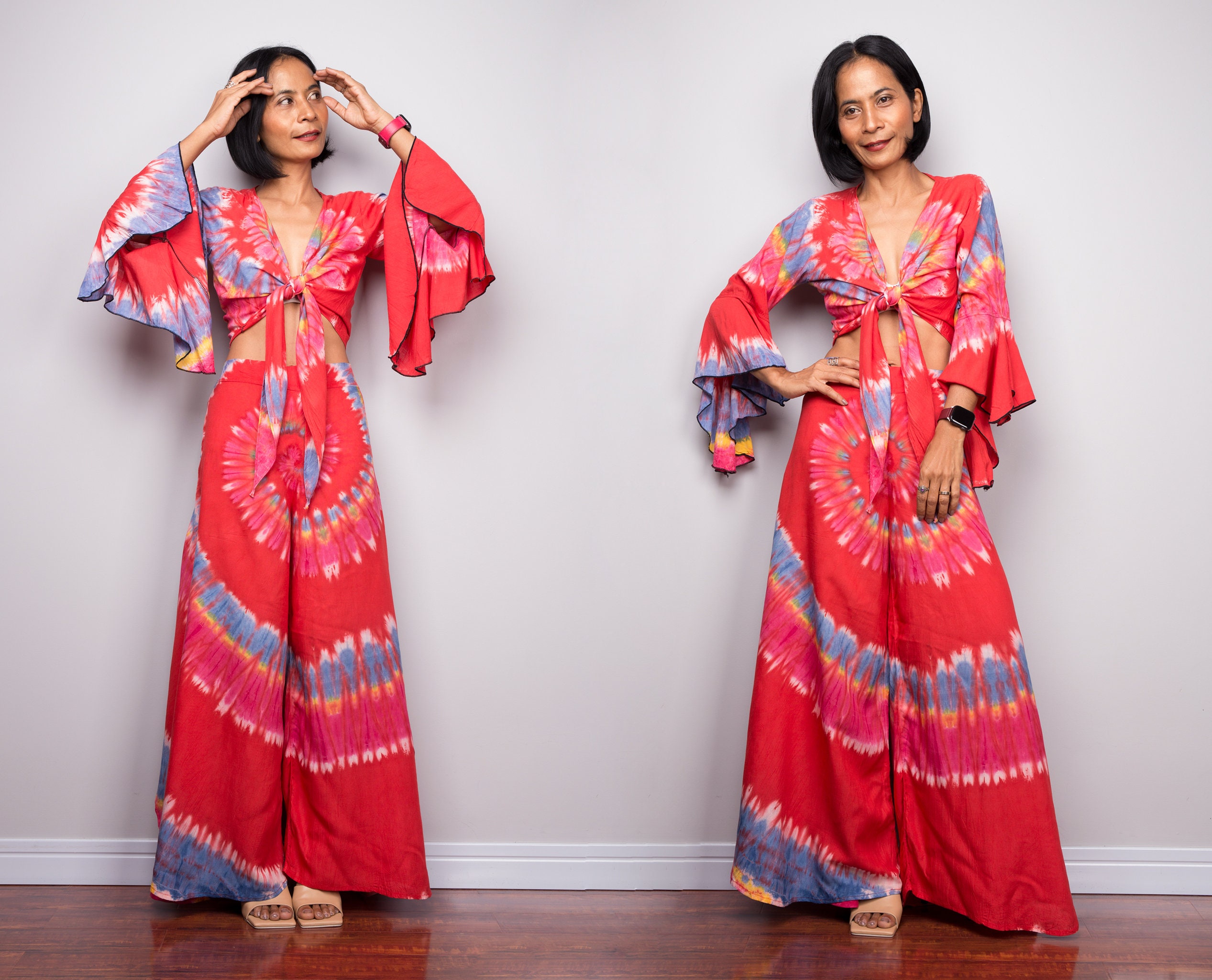 "Matching two piece outfit, Tie dye pants and top, hippie blouse top, tie dye pants, loungewear...