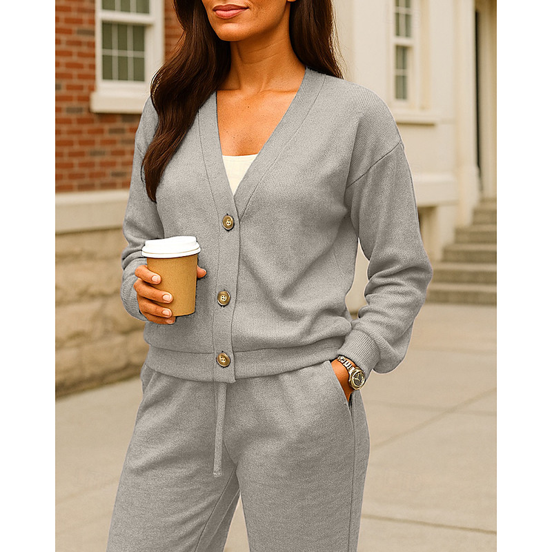 Women's Lounge Sweatsuit Sets Knitted Cardigan Set 2 Piece Tracksui...