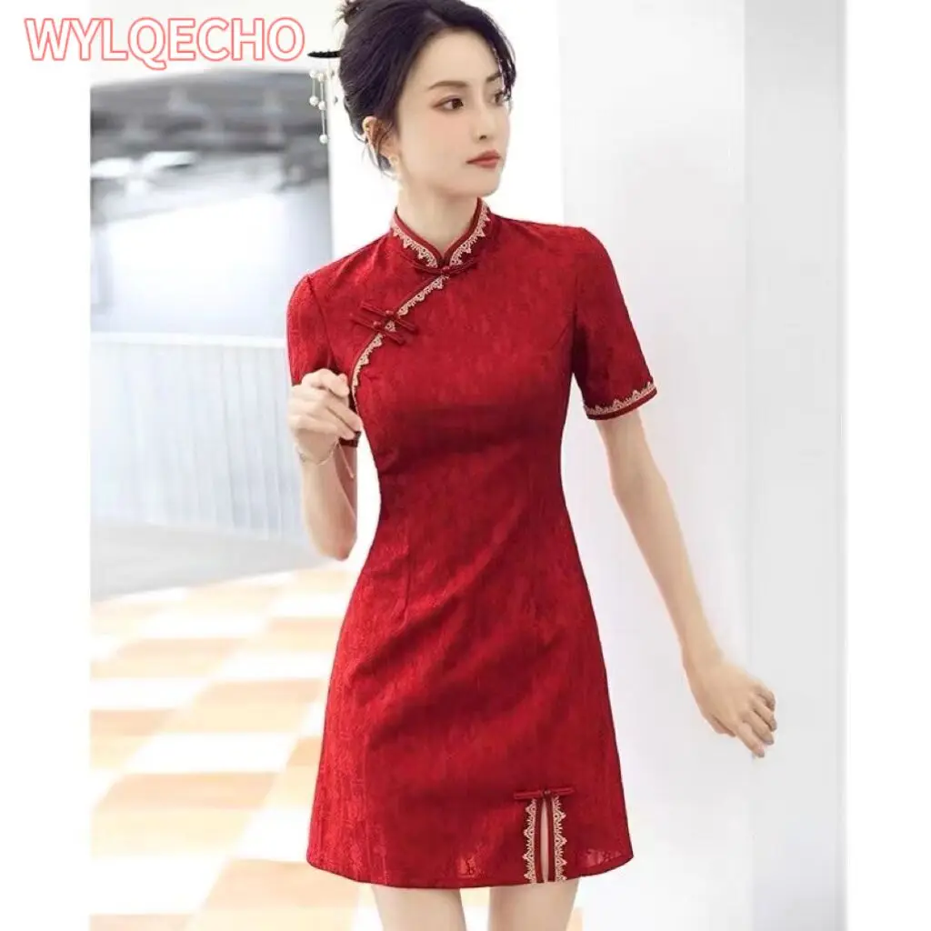 Traditional Chinese Clothing Red Cheongsam Summer New Modern Improved Young Short Qipao Dress New Ye...