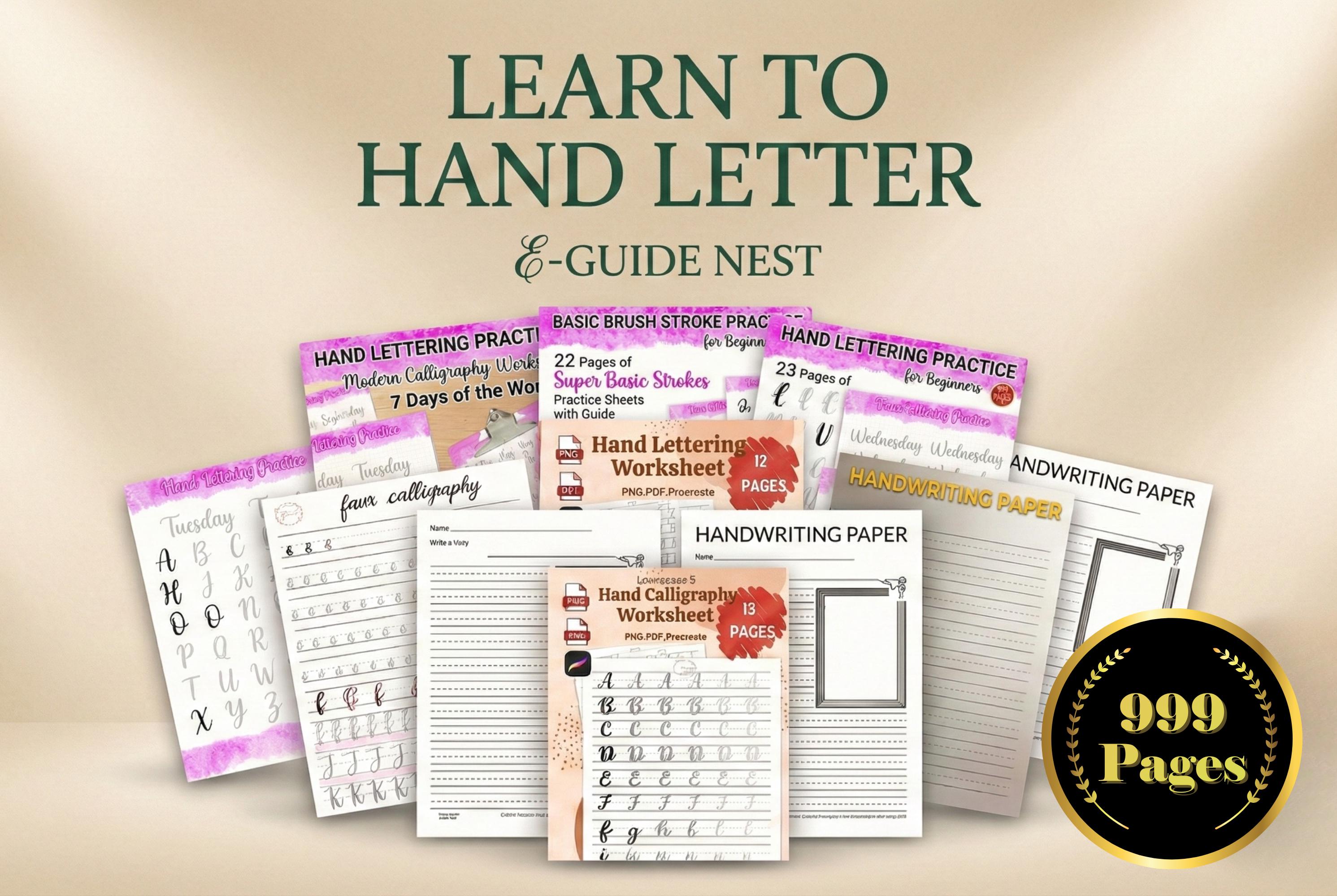 "Title: Learn to Hand Letter Workbook Bundle, Calligraphy Practice, Brush Lettering PDF Descrip...
