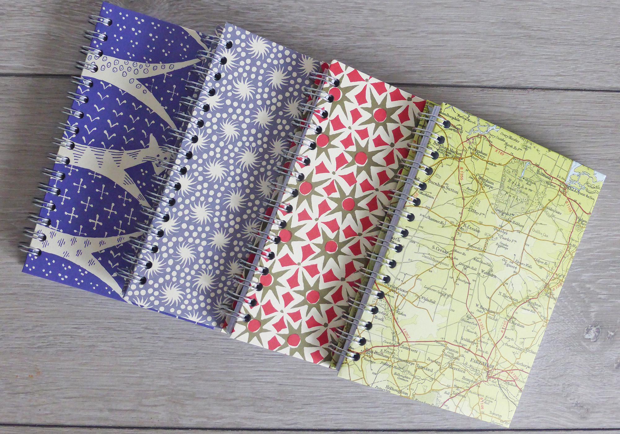 A spiral notebook handmade approximately A6 in size with 5mm grid paper bound by the sprial on the s...
