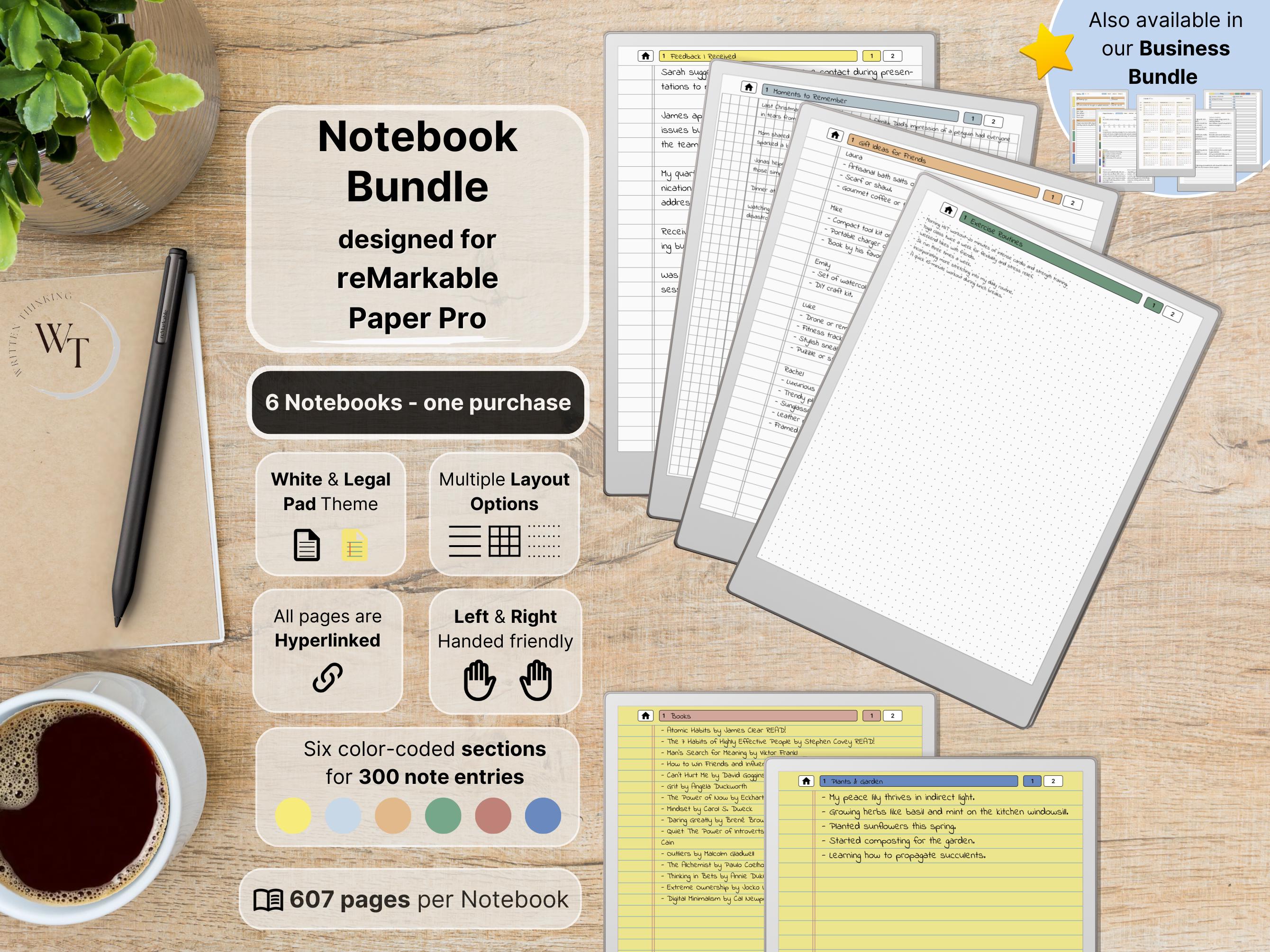 Hyperlinked Notebook Bundle for reMarkable Paper Pro: Set of White Notebooks & Yellow Legal Pads...