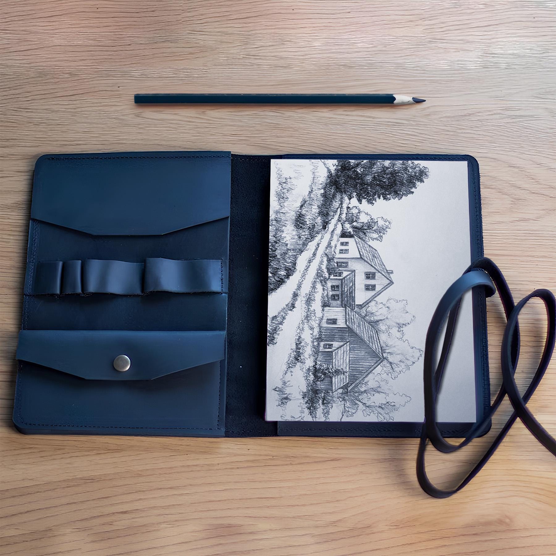 Leather sketchbook cover a4, Sketchbook cover a5 pen pocket, Custom...