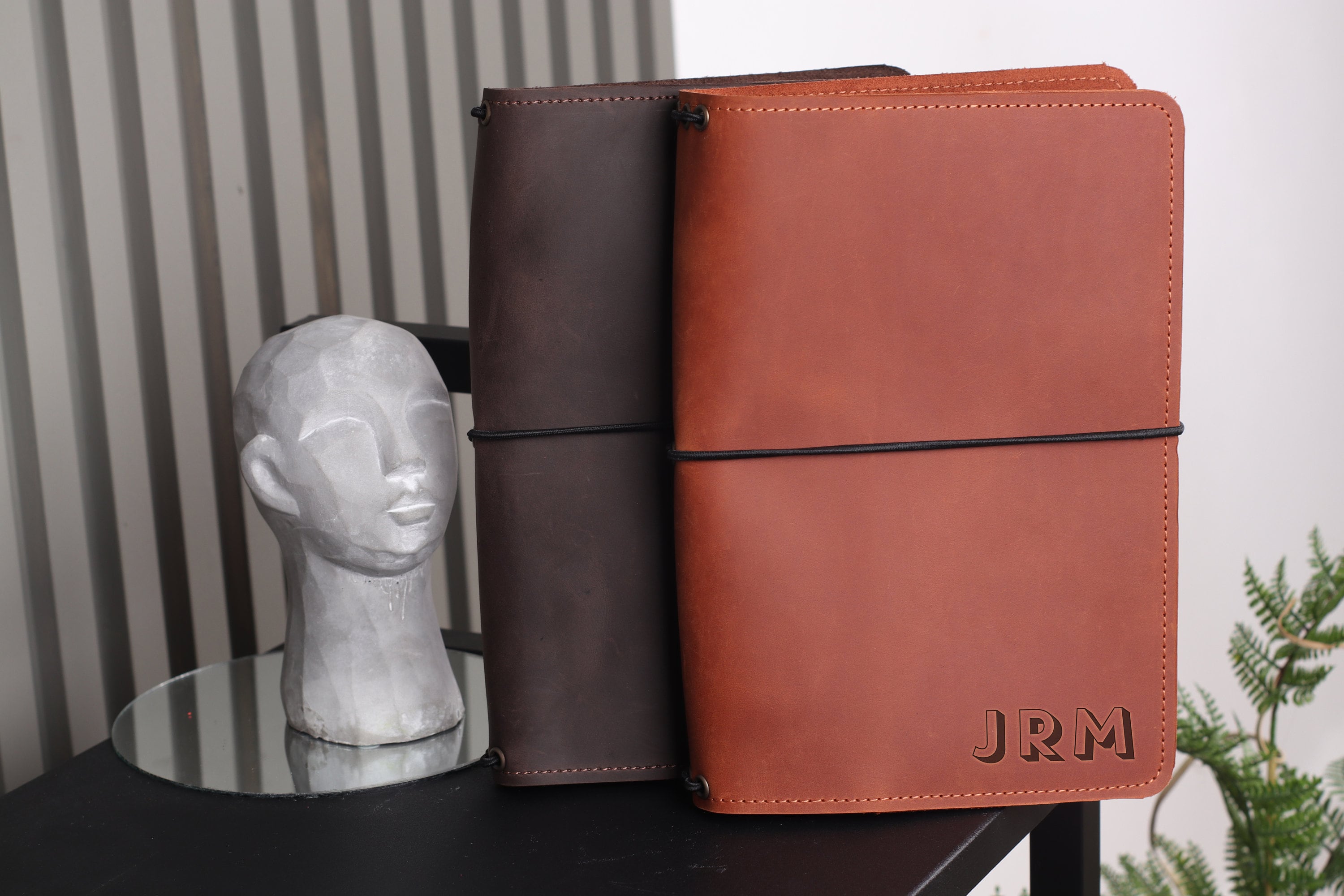 Personalized notebook cover, Engraved notebook cover, Leather noteb...