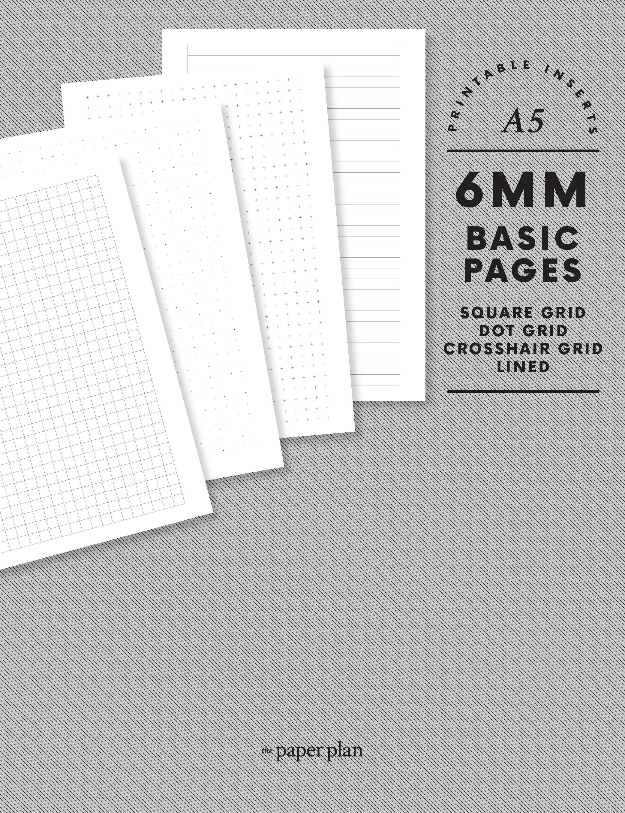A5 6mm Basic Blank Pages Notes Planner Pages Crosshair Grid Lined G...