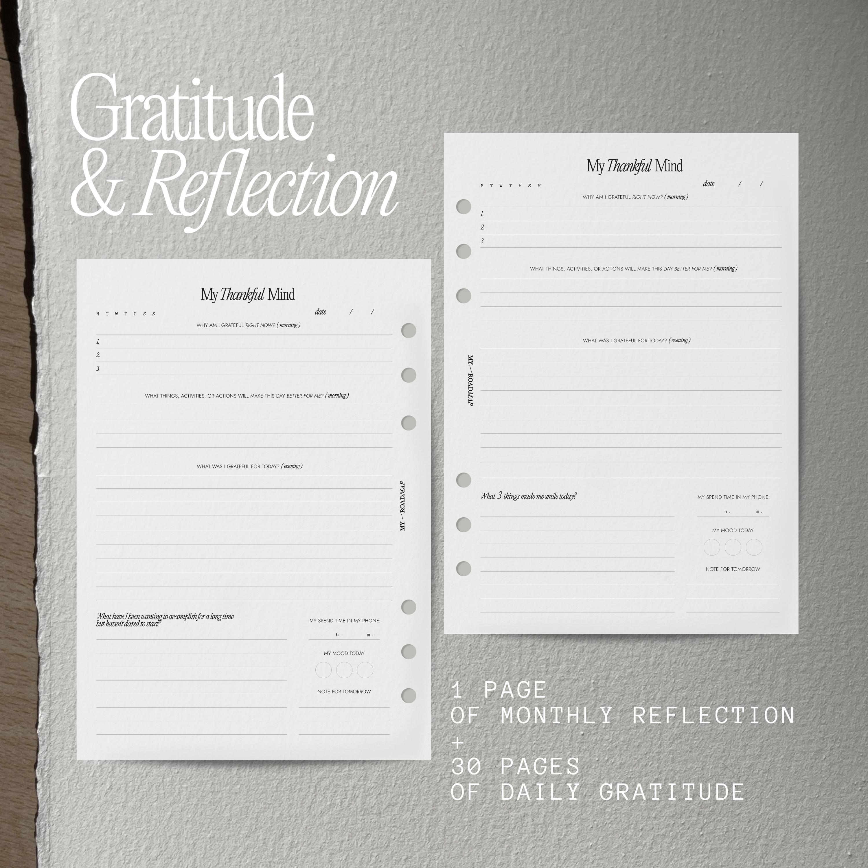 Enhance your planning routine with these gratitude and reflection planner inserts, the perfect compa...