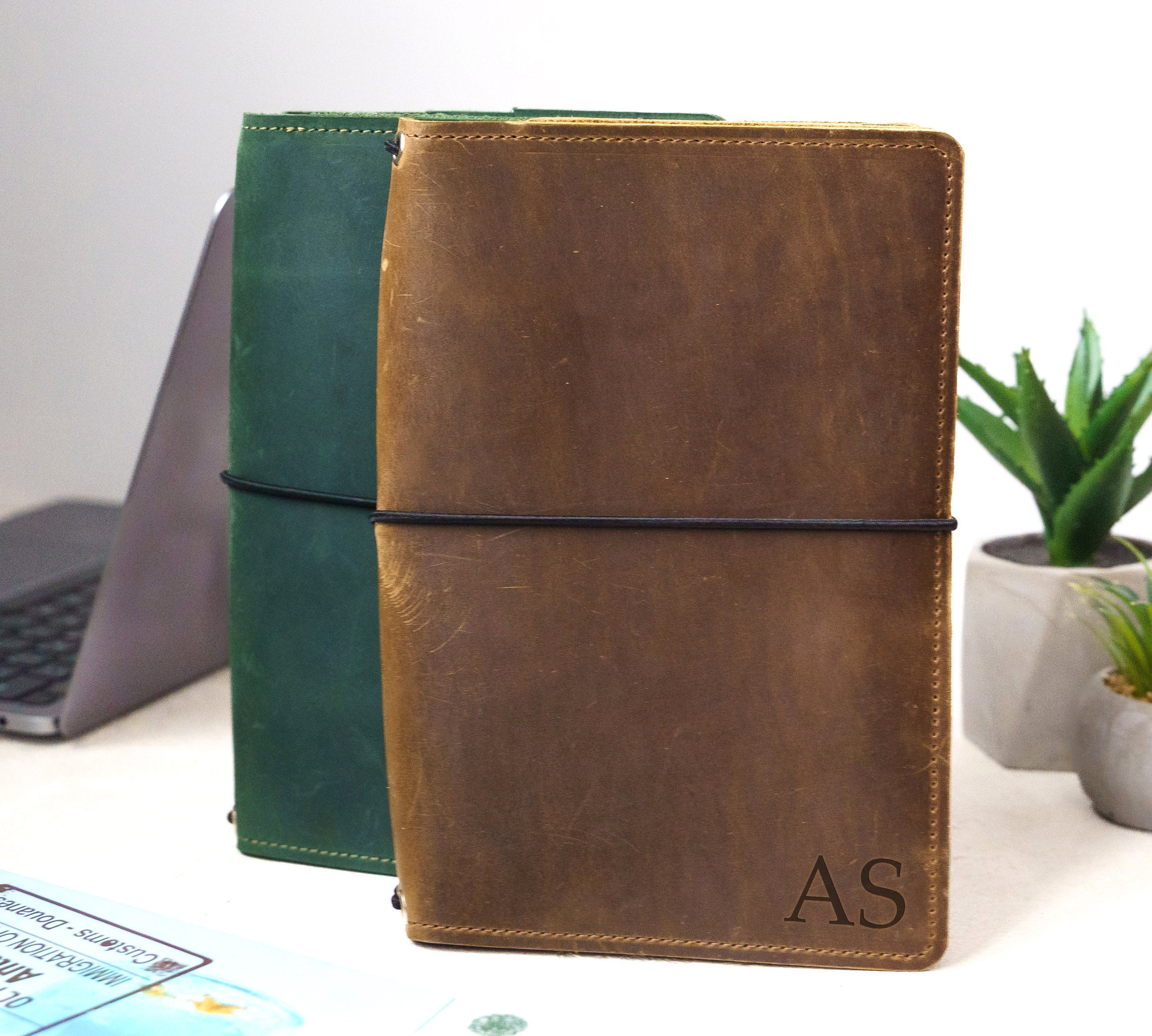 Leather writing journal,A4 leather notebook cover,Leather travelers...