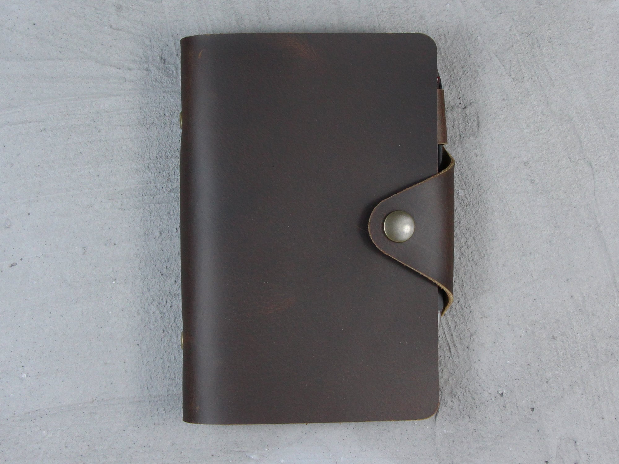 "Genuine leather notebook with pockets and pen holder. Available in different sizes: Field note...