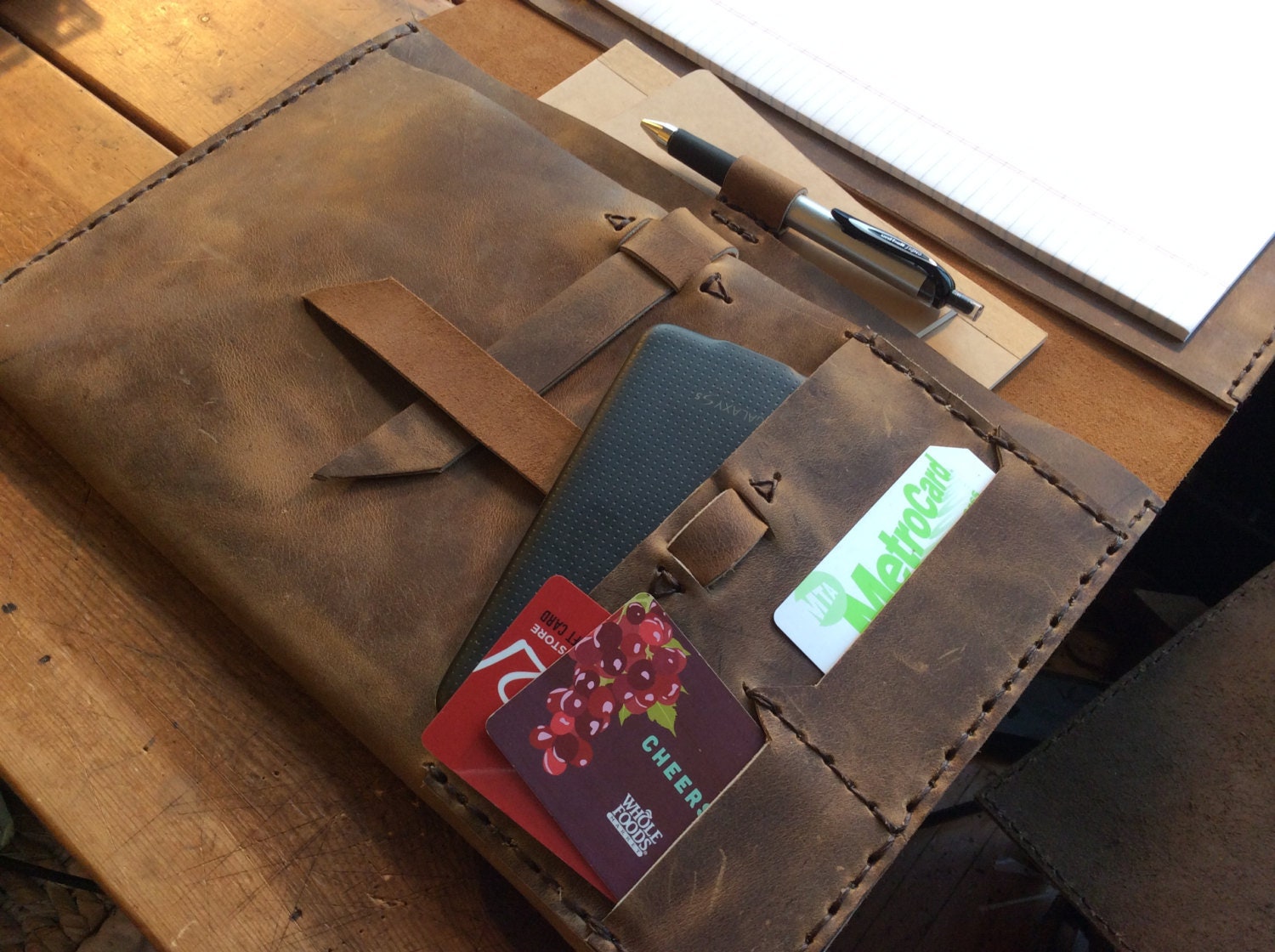 Custom legal pad holder - handmade in NY sewn by hand, fully customizable. For more handmade leather...