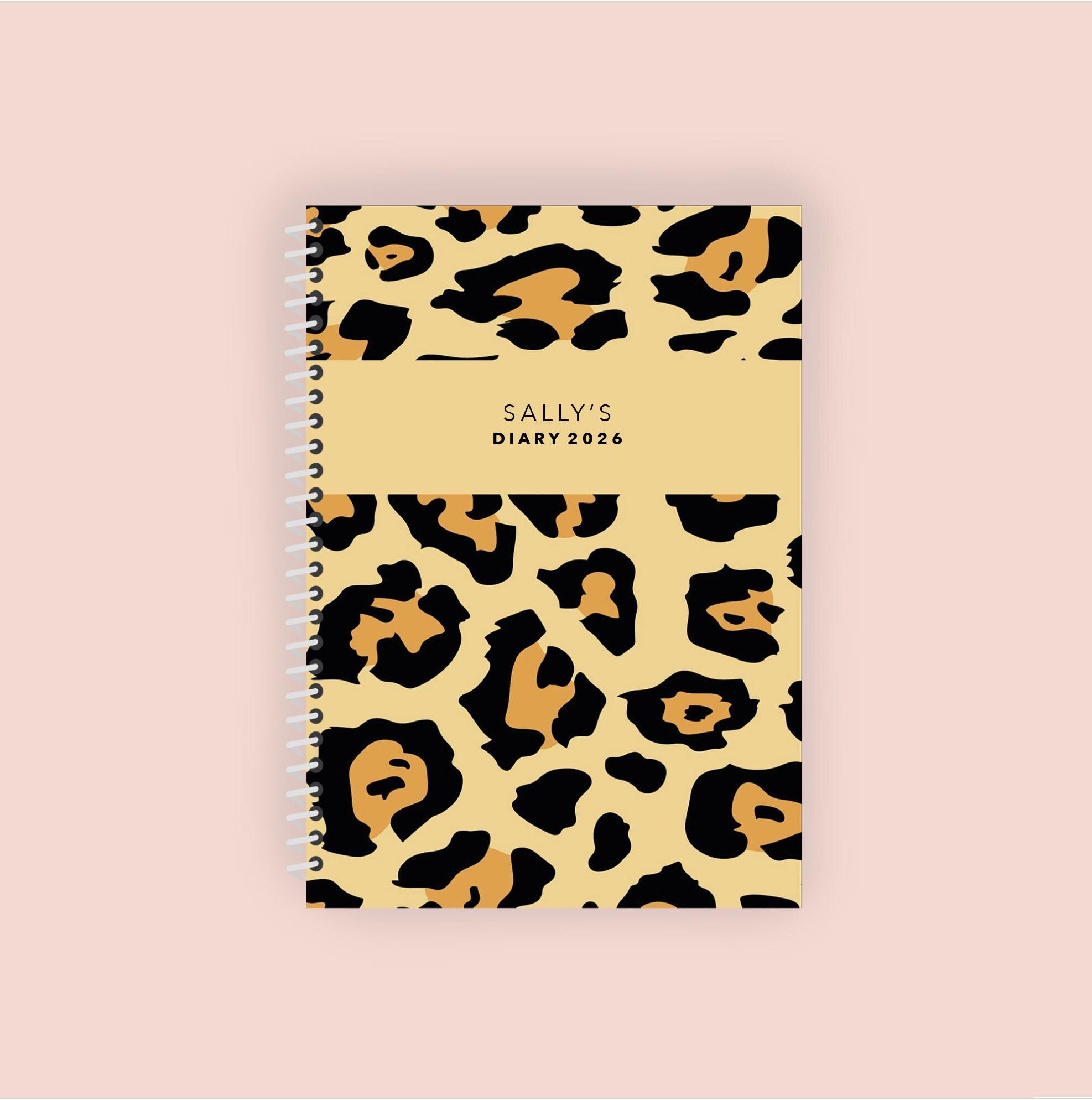 2026 Diary, A5, Personalised Diary, Leopard Print Diary, Week to Vi...