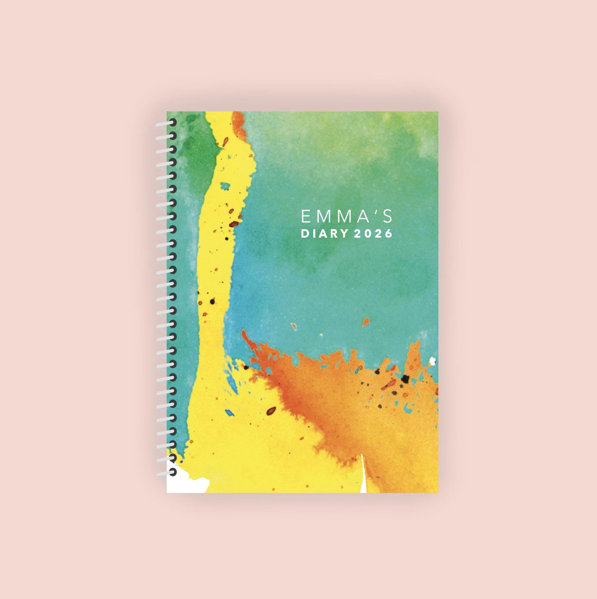 2026 Diary, A5, Personalised Diary, Watercolour Splash Print Diary,...