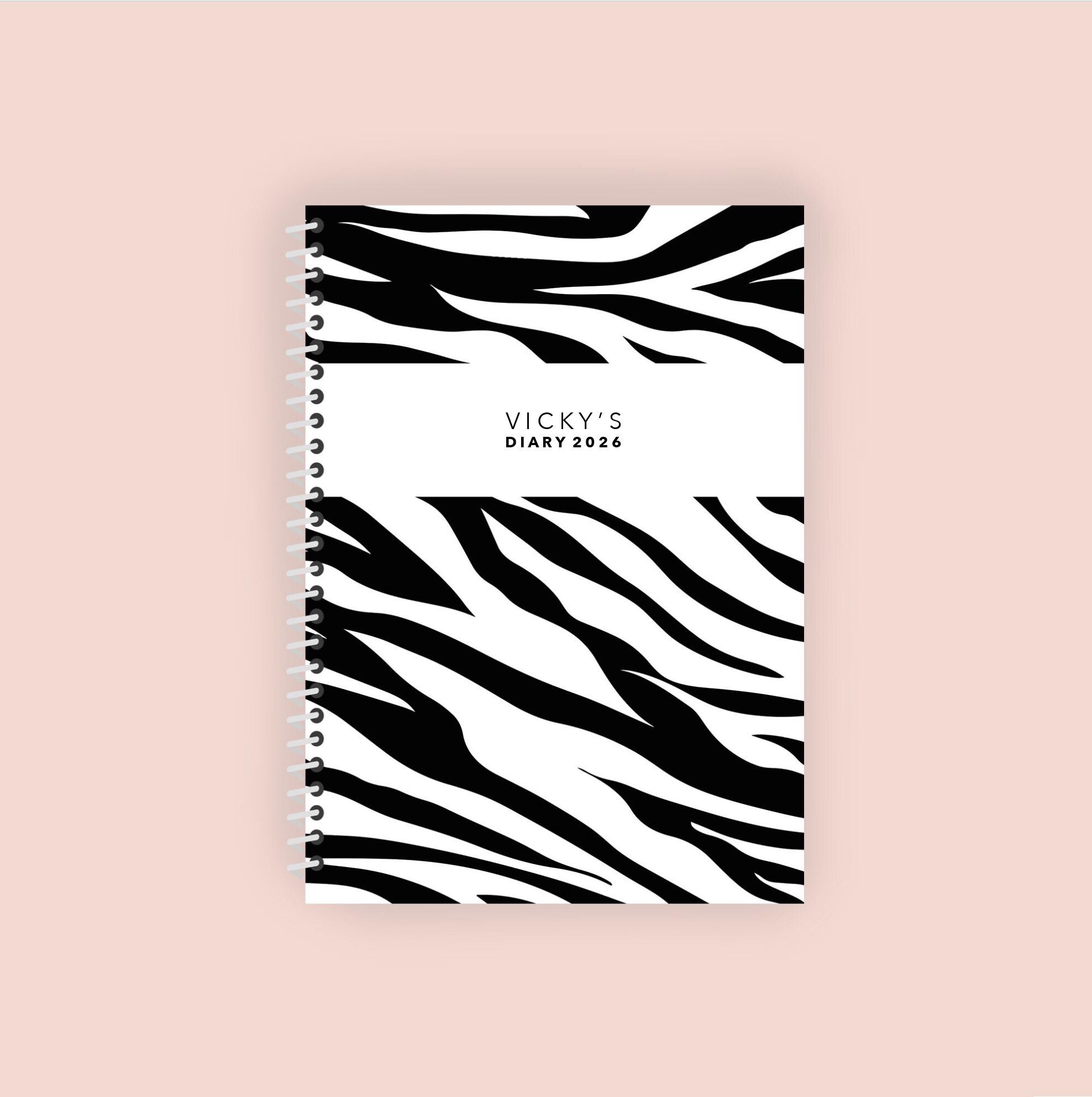 2026 Diary, A5, Personalised Diary, Zebra Print Diary, Week to View...