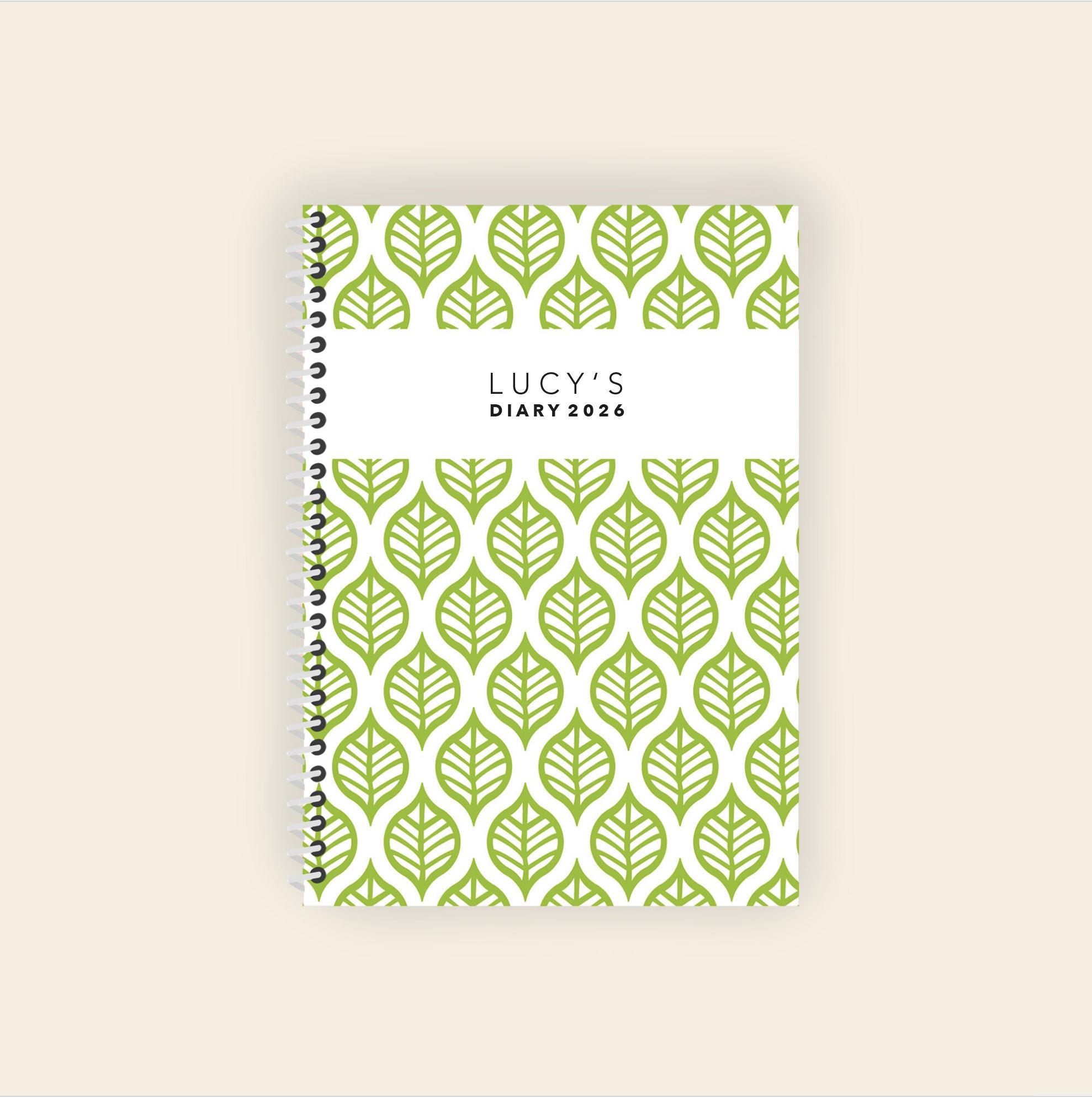 2026 Diary, A5, Personalised Diary, Leaf Print Diary, Week to View,...