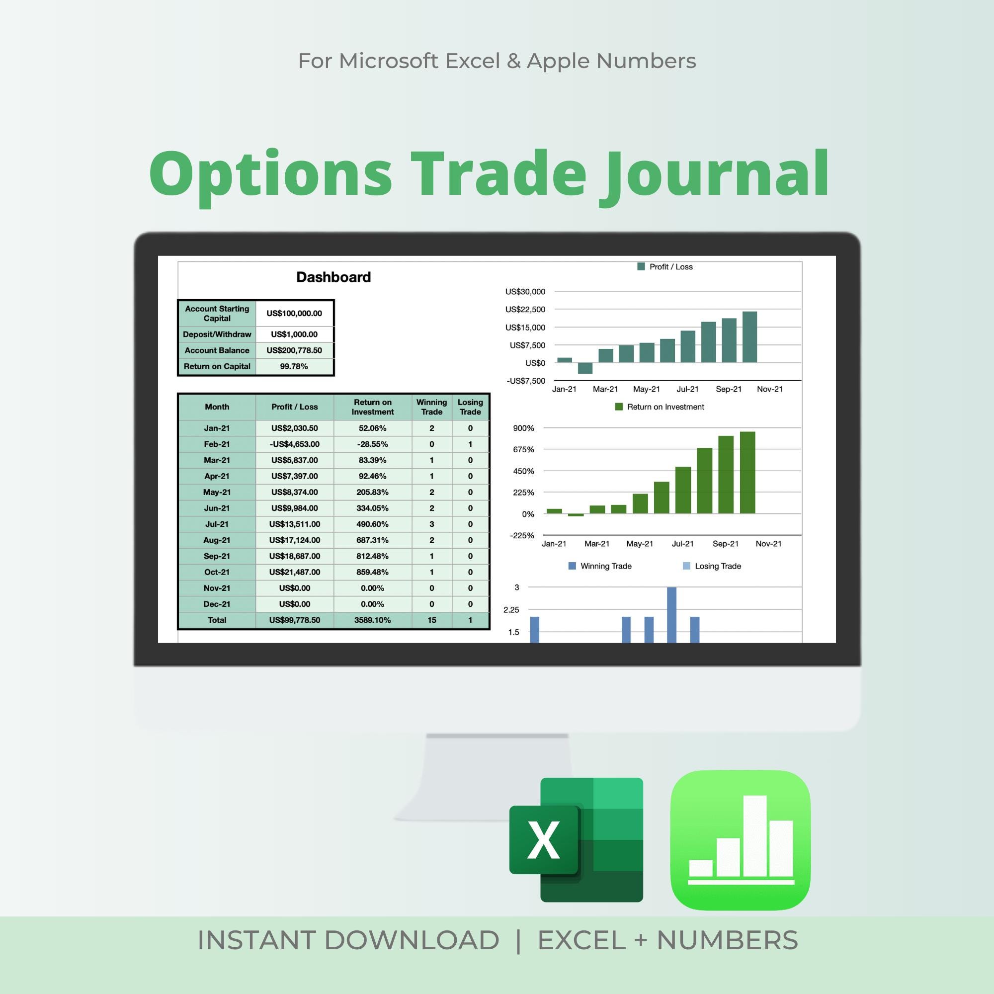 Options Trading Journal + Trade Analysis Chart (Excel & Numbers...
