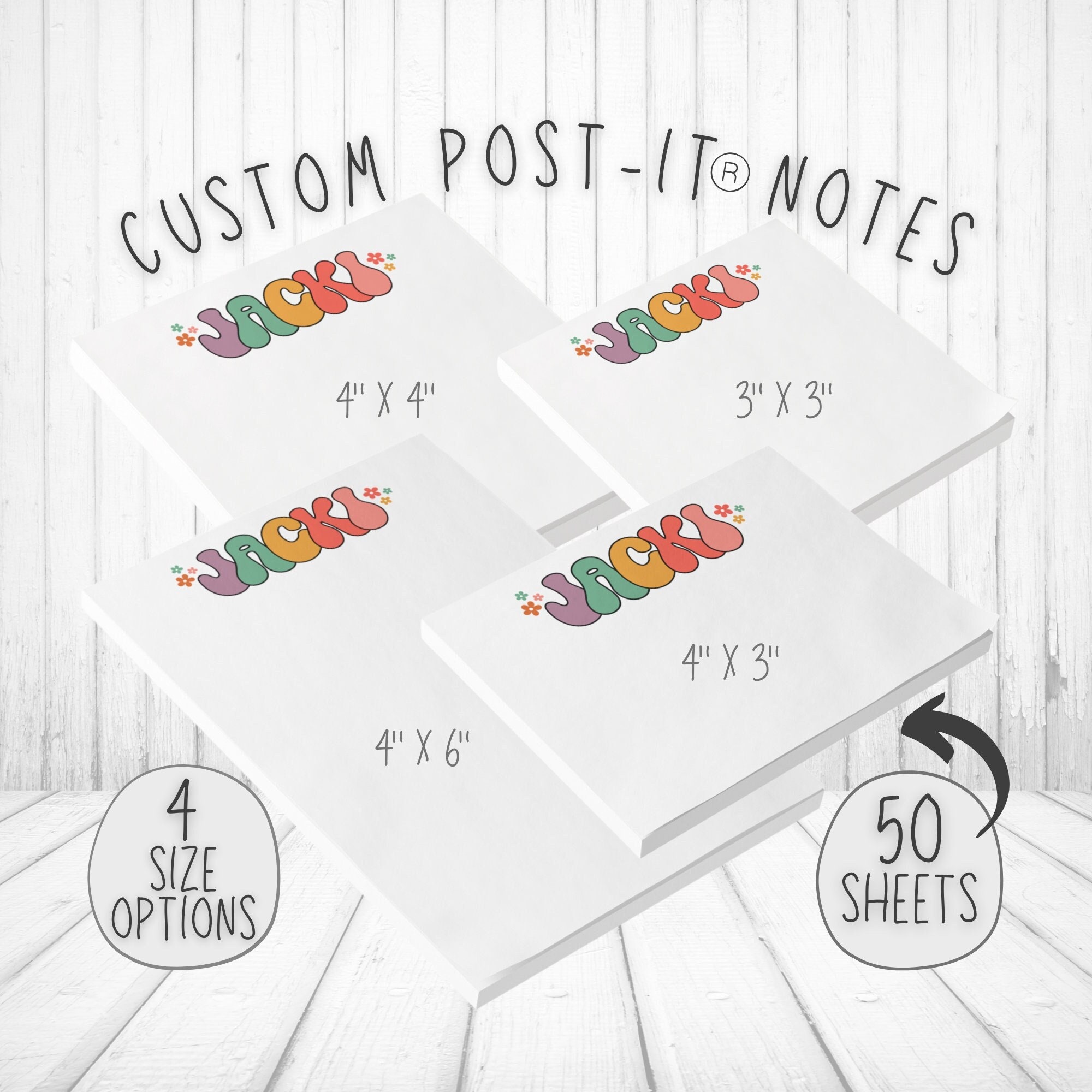 Personalize these post it notes featuring retro bubble letters with tiny flowers. Each custom 50-she...