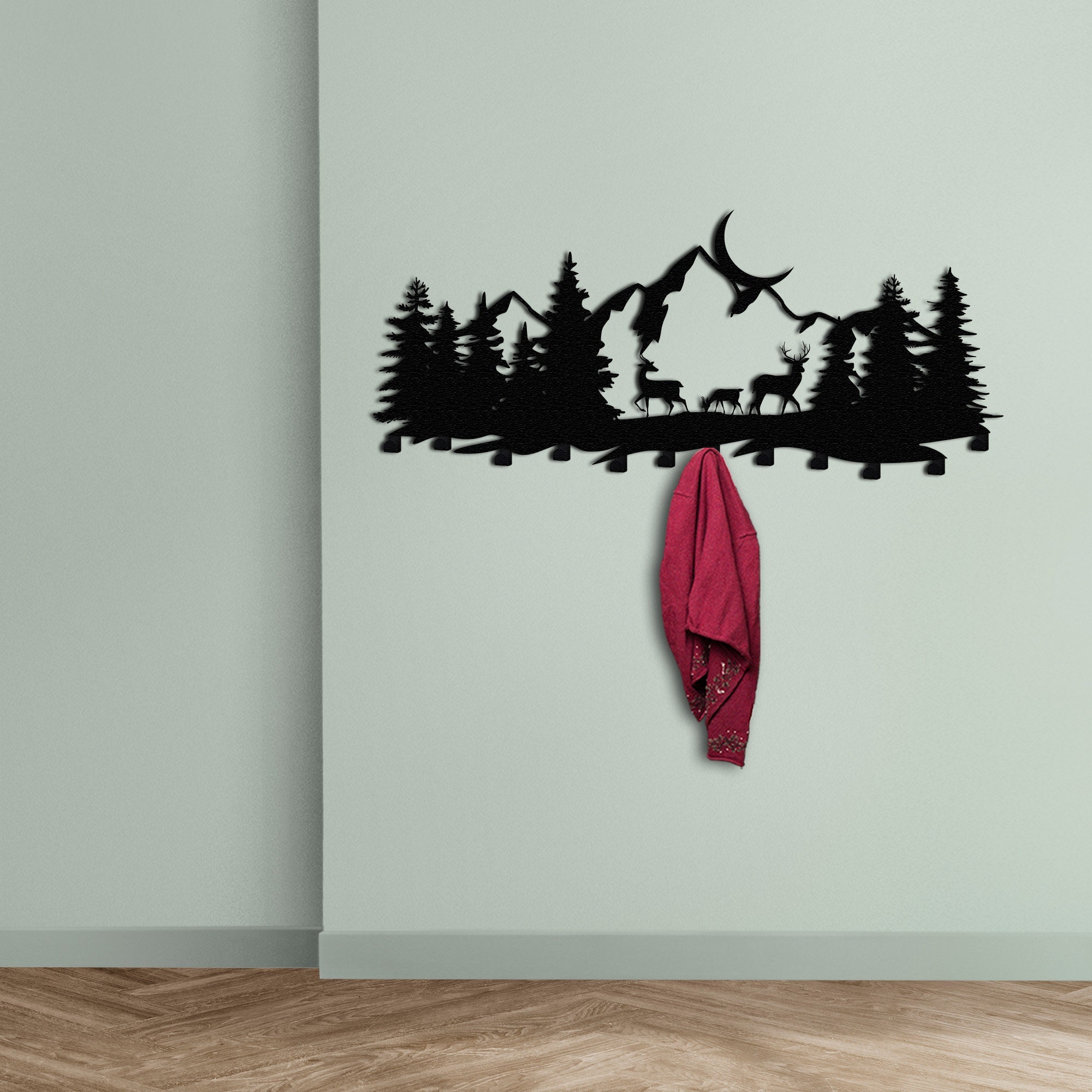 Hook Coat Rack Mountain Art Mountain Forest Metal Wall Decor Metal ...