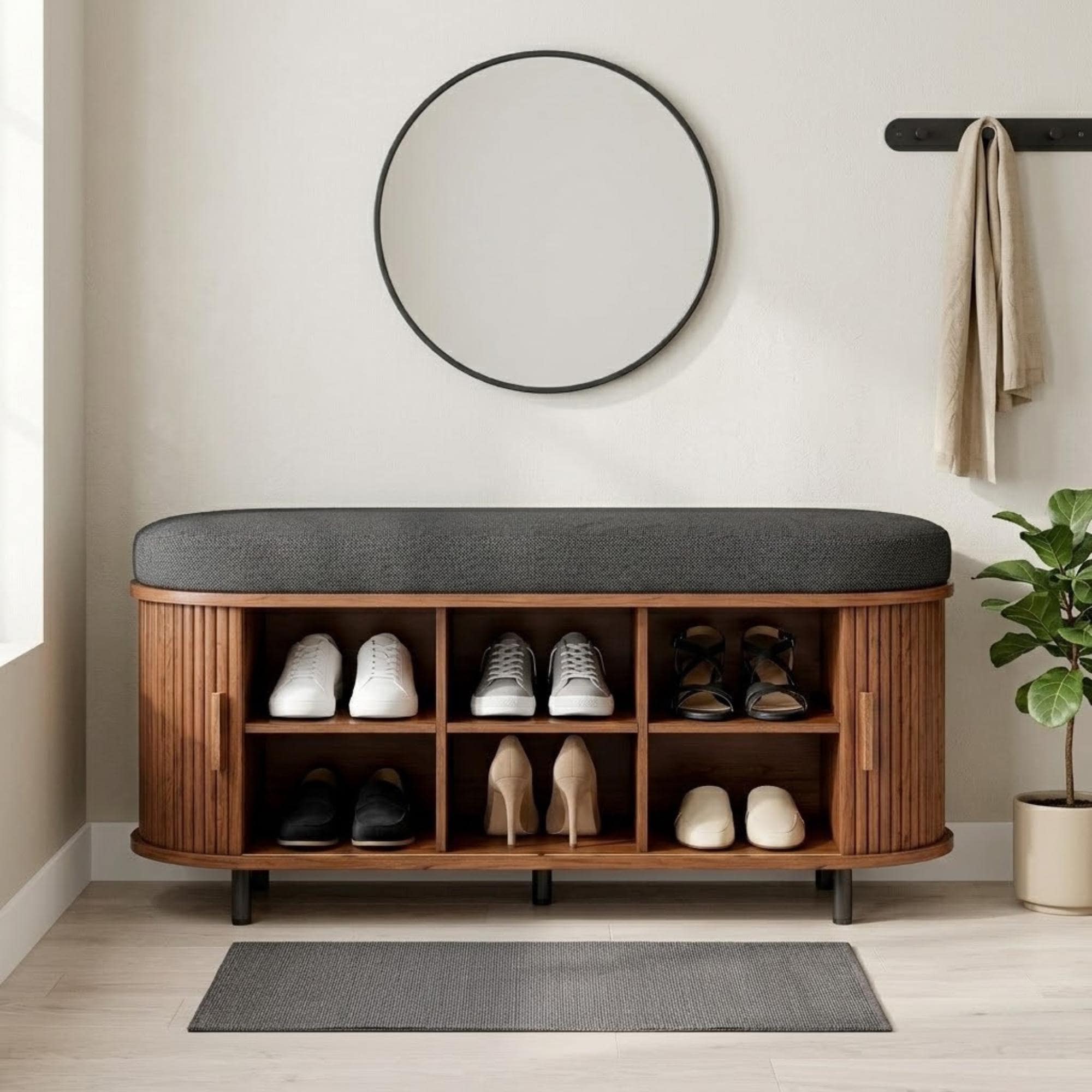 Mid-century entryway cushioned bench, Bench cushion, Shoe storage, ...