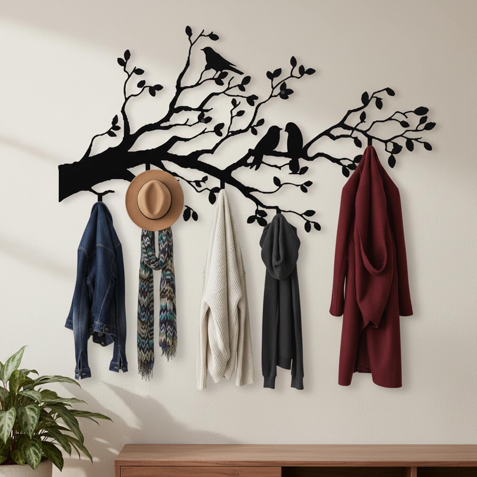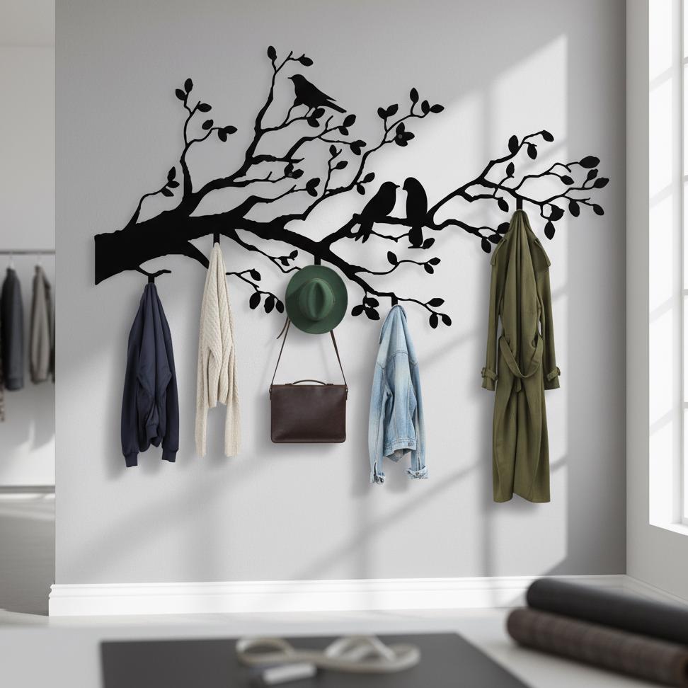 tree branch decor, tree coat rack, birds on branch, entryway hooks, coat rack, entryway wall hanger,...