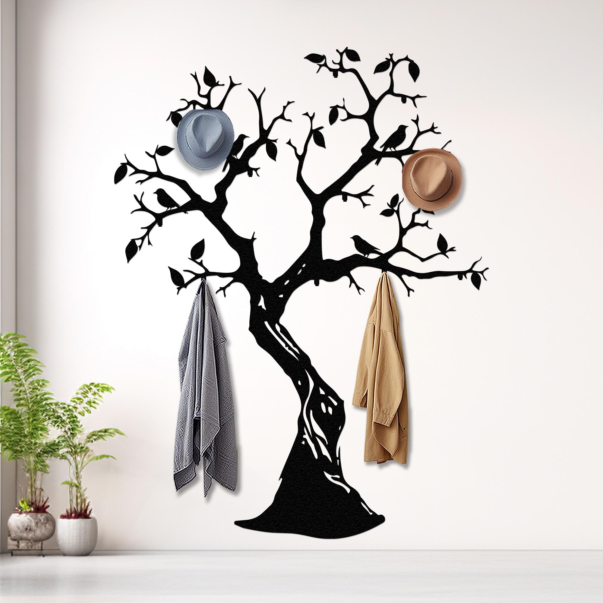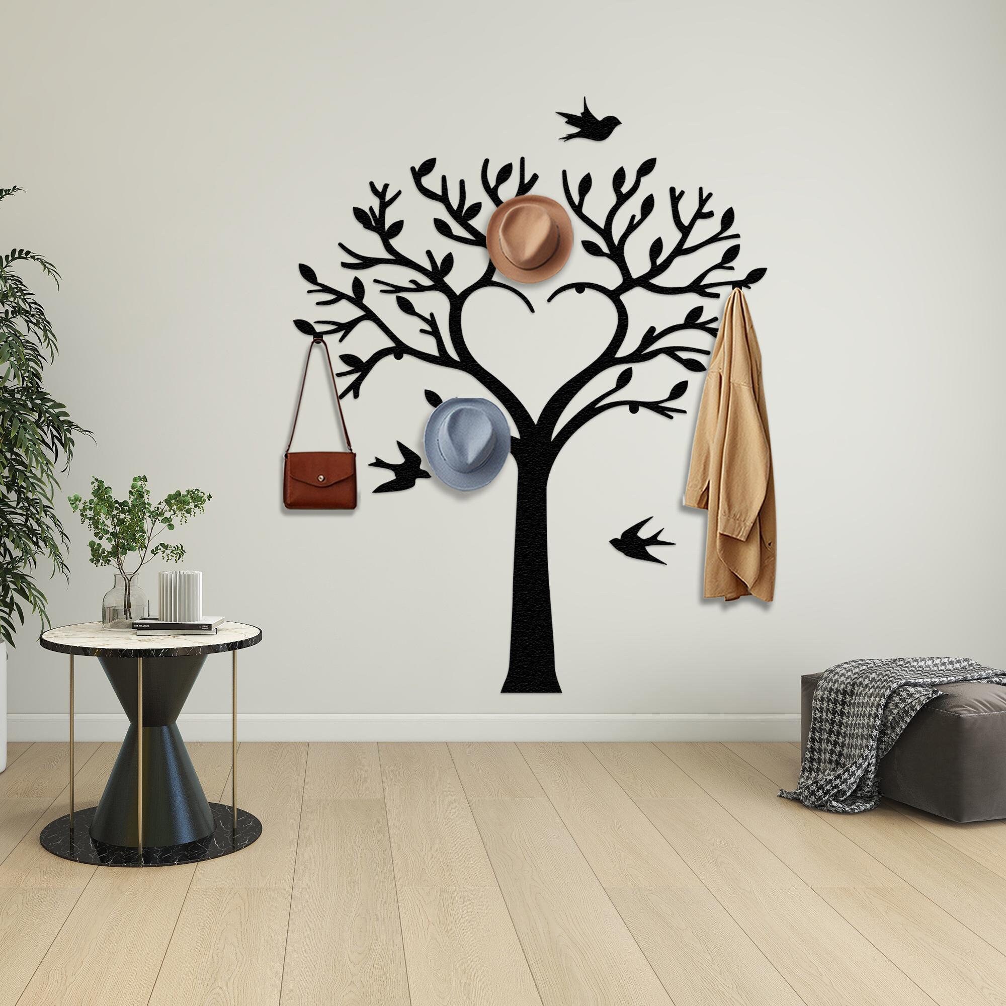 Tree Coat Rack Birds on Branch, Entryway Wall Hanger, Decorative Ho...