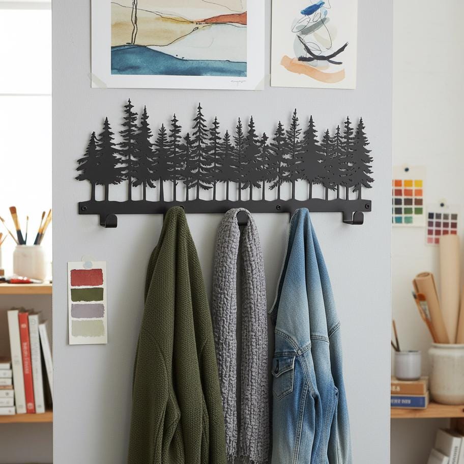Pine Tree Wall Hook,Woodland Metal Hook,Minimalist Forest Hook,Deco...